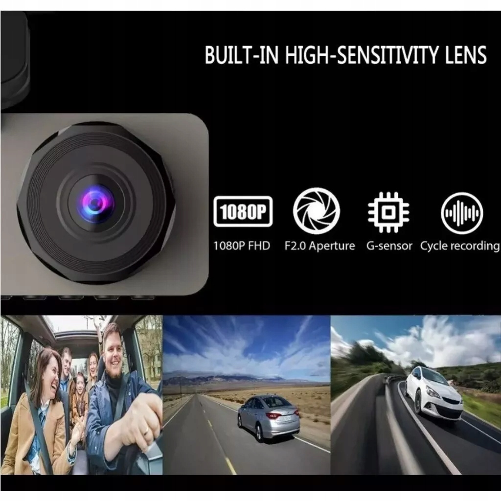 3 камери на приладовій панелі: передня, внутрішня, задня 1080P FHD: з 2,0-дюймовим РК-екраном, подвійна камера приладової панелі для записів автомобілів спереду, салон і ззаду. Передня і задня автомобільні камери одночасно записують дорогу попереду та салон салону в подвійній роздільній здатності 1920x1080P, фіксуючи кожну деталь автомобіля під час руху. Найкращий вибір для онлайн-сервісів спільних поїздок, водіїв таксі/спільних поїздок, пасажирів і сімей.