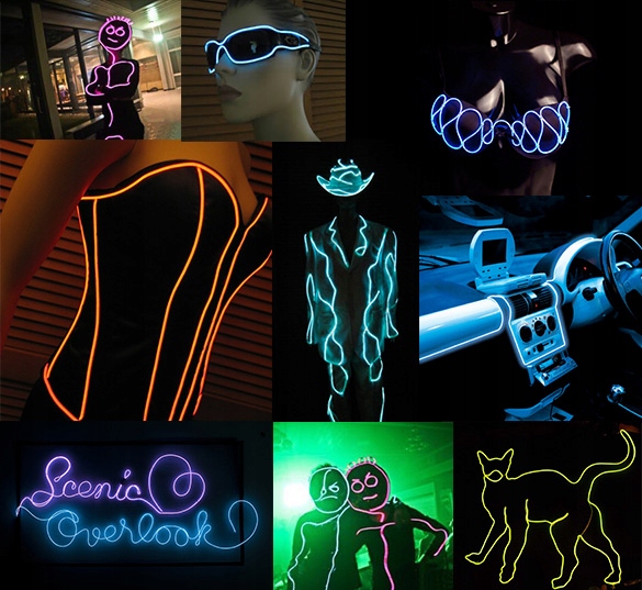 Ель -дротяний бар використовується для освітлення меблів, пристроїв, одягу або автомобіля - візуальна настройка. Оптичні волокна навколишнього середовища виготовлені з найвищої якості матеріалів та використовуючи новітні технології. Оптичні волокна навколишнього середовища використовують технологію електролюмінесцентного світла . Це не чутливий, лінійний і навіть по всій довжині оптичного волокна. Доступний у 10 кольорах.