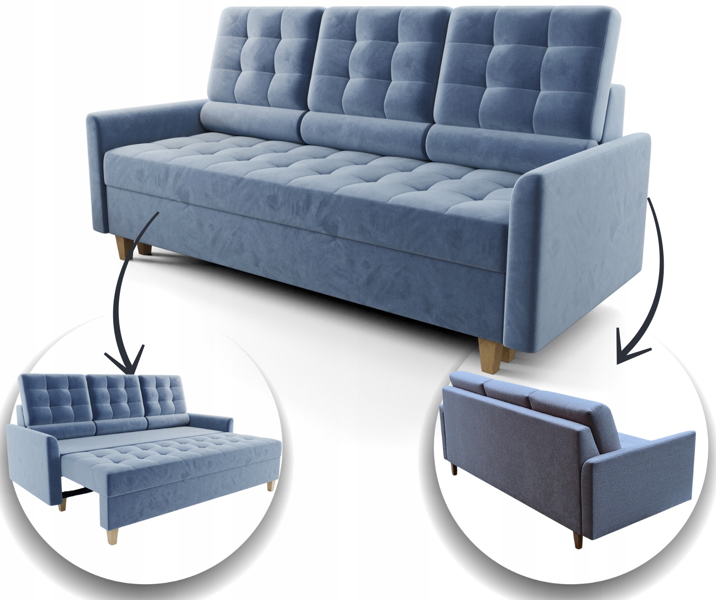 Неможливо не згадати естетичне, витончене стьобання на сидінні та спинці меблів. Завдяки використанню класичного дизайну та сучасних зручностей ця модель дивана ідеально впишеться в будь-який простір. Крім того, ми оснастили диван дерев'яними ніжками висотою 12 см, завдяки чому весь предмет меблів виглядає дуже легким і сучасним. Також варто звернути увагу на регульовану спинку. У комплекті з диваном є 3 ролика, які піднімають спинку, щоб ви могли гарантувати спині ідеальну висоту для відпочинку після важкого дня.