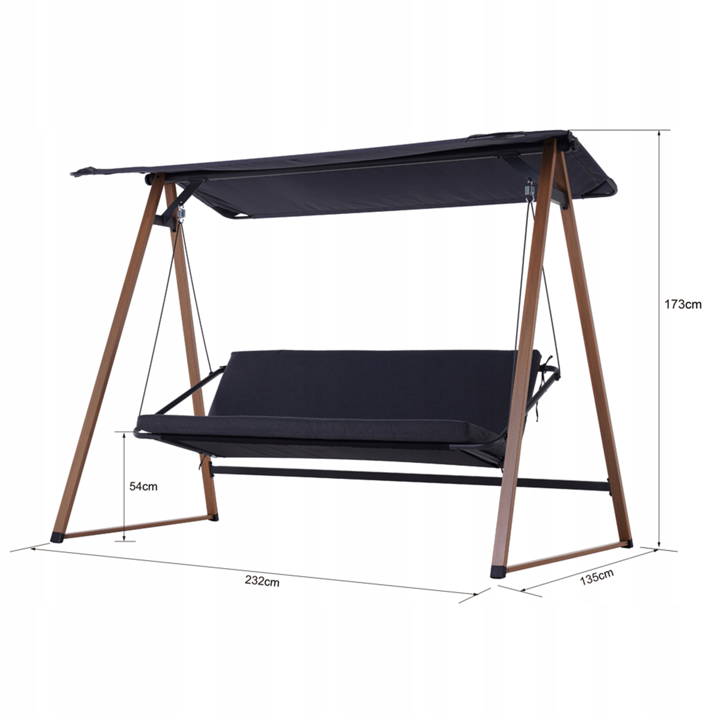 - рама гойдалок виготовлена зі сталі з порошковим покриттям, що забезпечуєвищу стійкість до несприятливих погодних умов