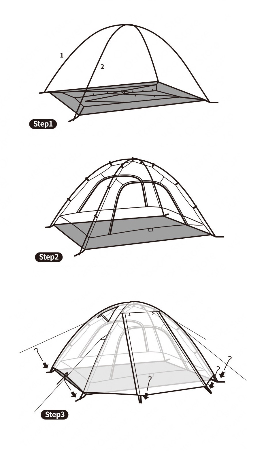 ✅ Конструкція типу іглу, в якій сконструйовано намет, є міцною та практичною. Завдяки алюмінієвій рамі та міцним відтяжкам він дуже добре протистоїть вітру. Покриття та підлога мають водонепроникність 2000 мм, що забезпечує хороший захист навіть від тривалих та інтенсивних опадів. Намет легко встановити та скласти, а коли він упакований, він утворює зручний пакет, який можна легко прикріпити до рюкзака або навіть заховати в ньому.