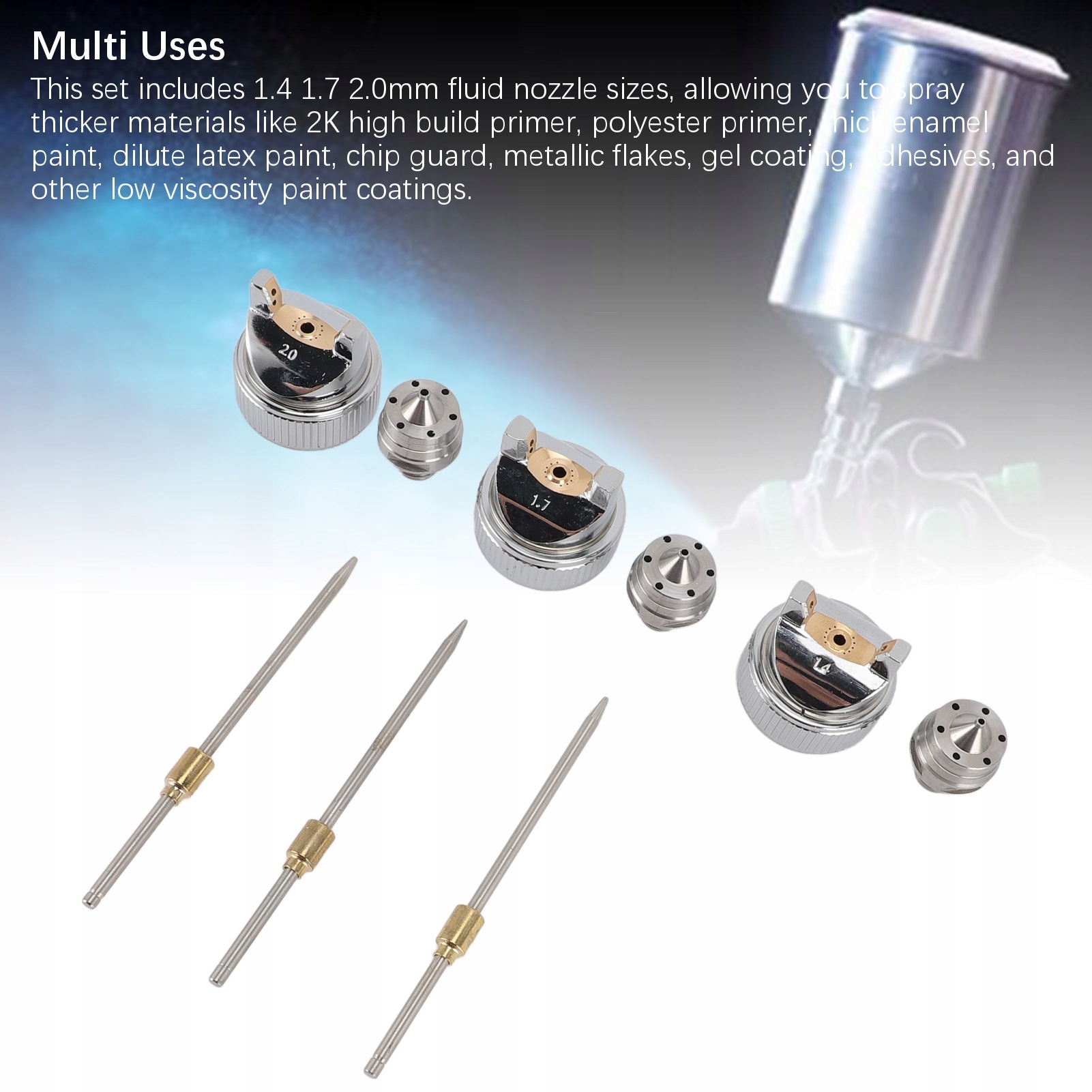 1. Багато цілей: Цей набір включає 1,4 1,7 2,0 мм рідкі форсунки, що дозволяє розпилювати товсті матеріали, такі як товщина, що розбивається 2K, поліестерний підлісок, густа емальська, розведена латексна фарба, осона перед мікросхемами, металевим клаптям, гель, гель, клеї та інші картини з низькою в'язкістю. Точно розроблений для професіоналів: цей набір інструментів для розпилення розроблений для професіоналів. Усі компоненти точно зроблені для забезпечення ідеальної продуктивності для всіх типів фарби. Висока продуктивність: Завдяки інноваційній технології розпилення, насадки та системи Air Gowica, оптимальні показники можуть бути досягнуті у випадку всіх джерел. Прами на фарбування атомізовано в ручці, створюючи чистий і навіть підкладний або поверхневий шар. Тривалість тривалості: Частина цього набору кріплення повітря за допомогою насадки Igium виготовлена з точно розробленої латуні та пластику з високою обтяжкою. Вони сумісні з останньою водою -фарбою автомобіля. Широка сумісність: Набір IGOWE та AIR GOWICA сумісний з різними моделями та дозволяє всебічно використовувати в автомобільних, промислових та деревообробних програмах.