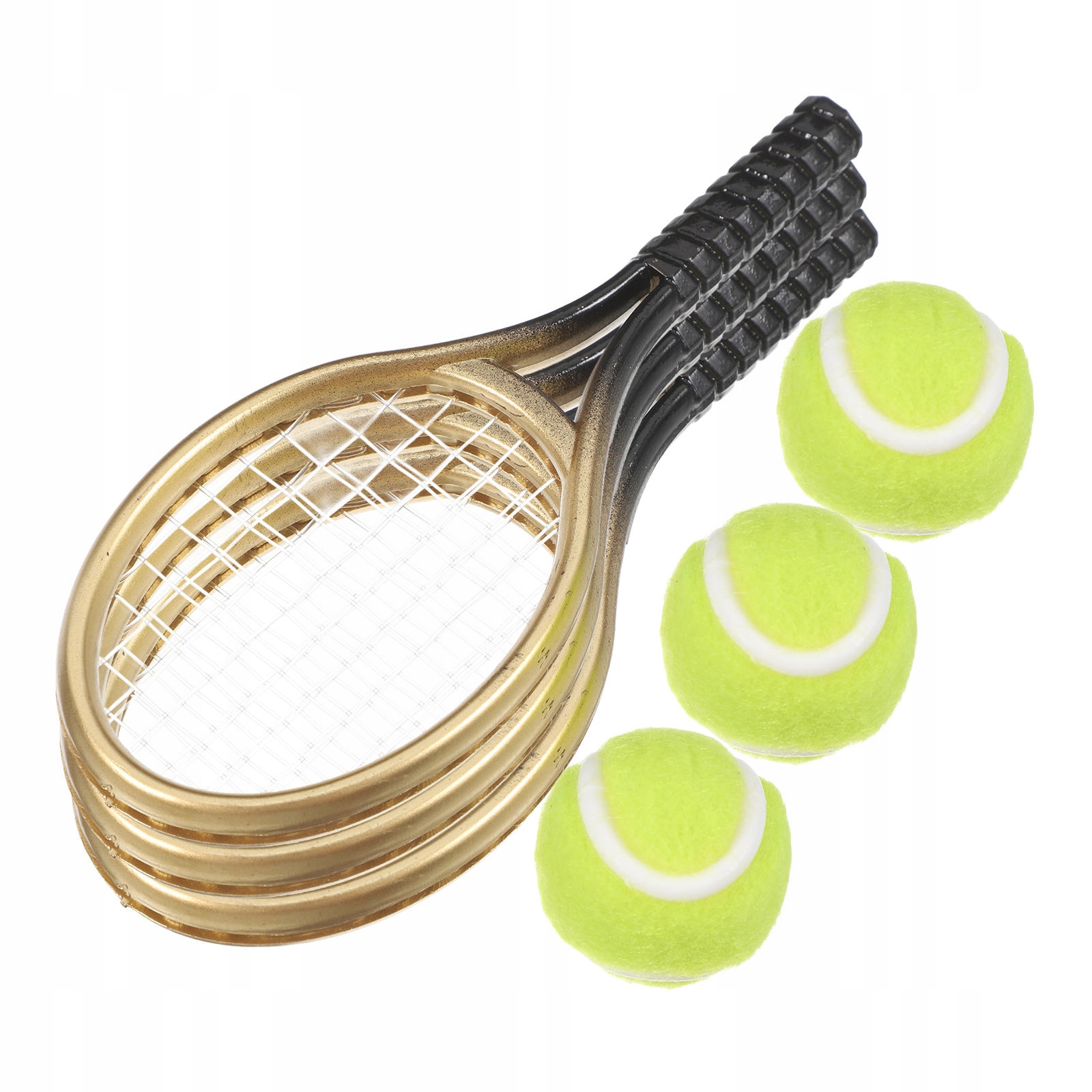 3 набори міні -тенісної ракетки та набір кульок 1:12 Мініатюрний набір тенісних ракет для