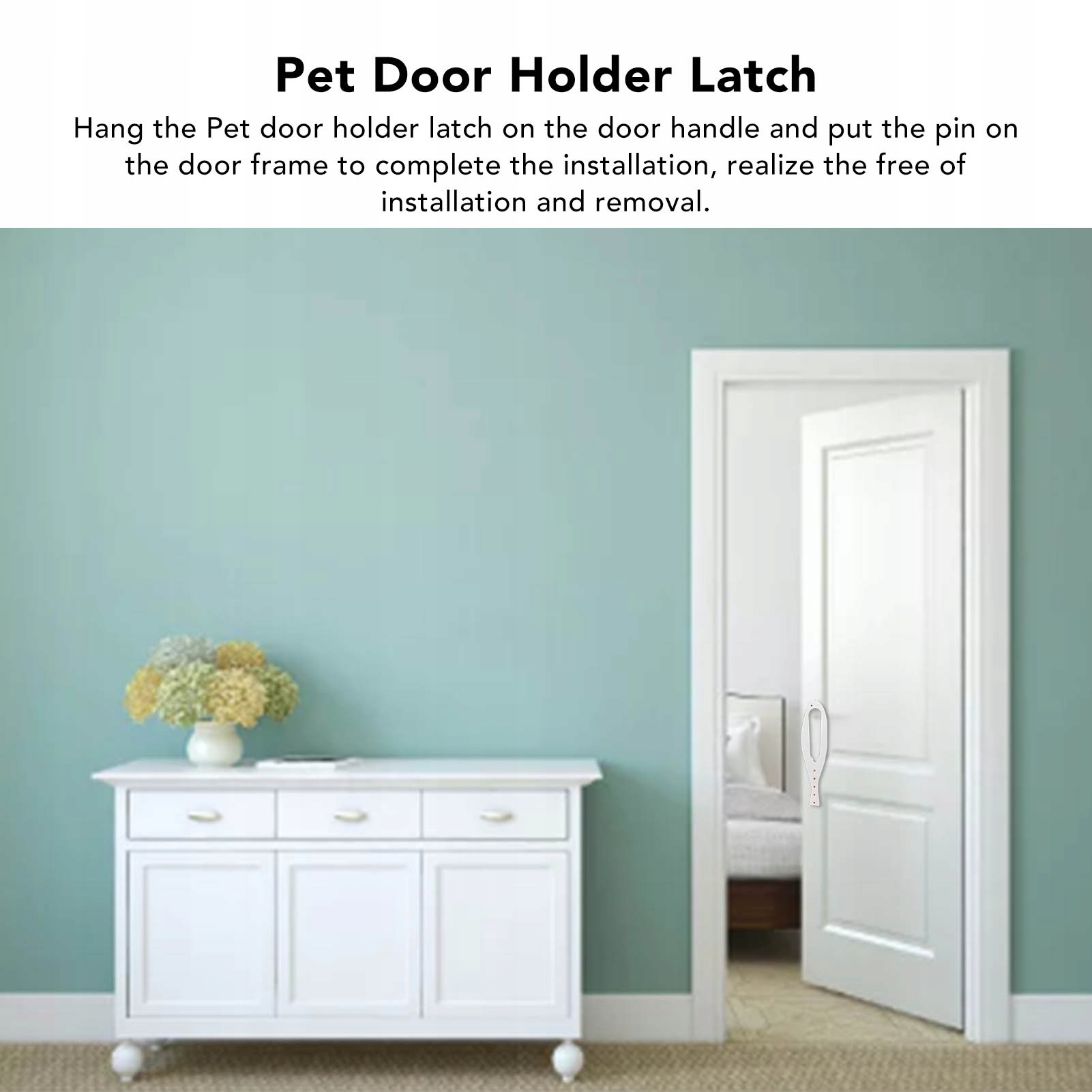1. Проста установка: Повісьте засувку для ручки дверей на ручці дверей і покладіть шпильку на раму, щоб завершити установку, без необхідності складання та розбирання.