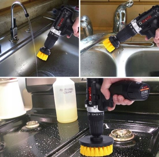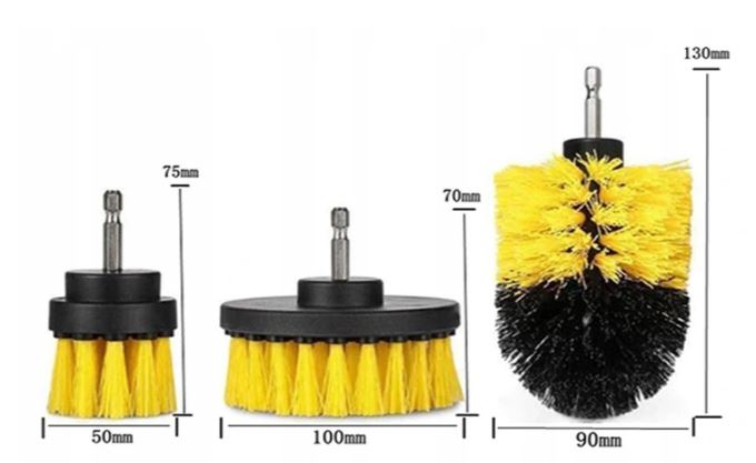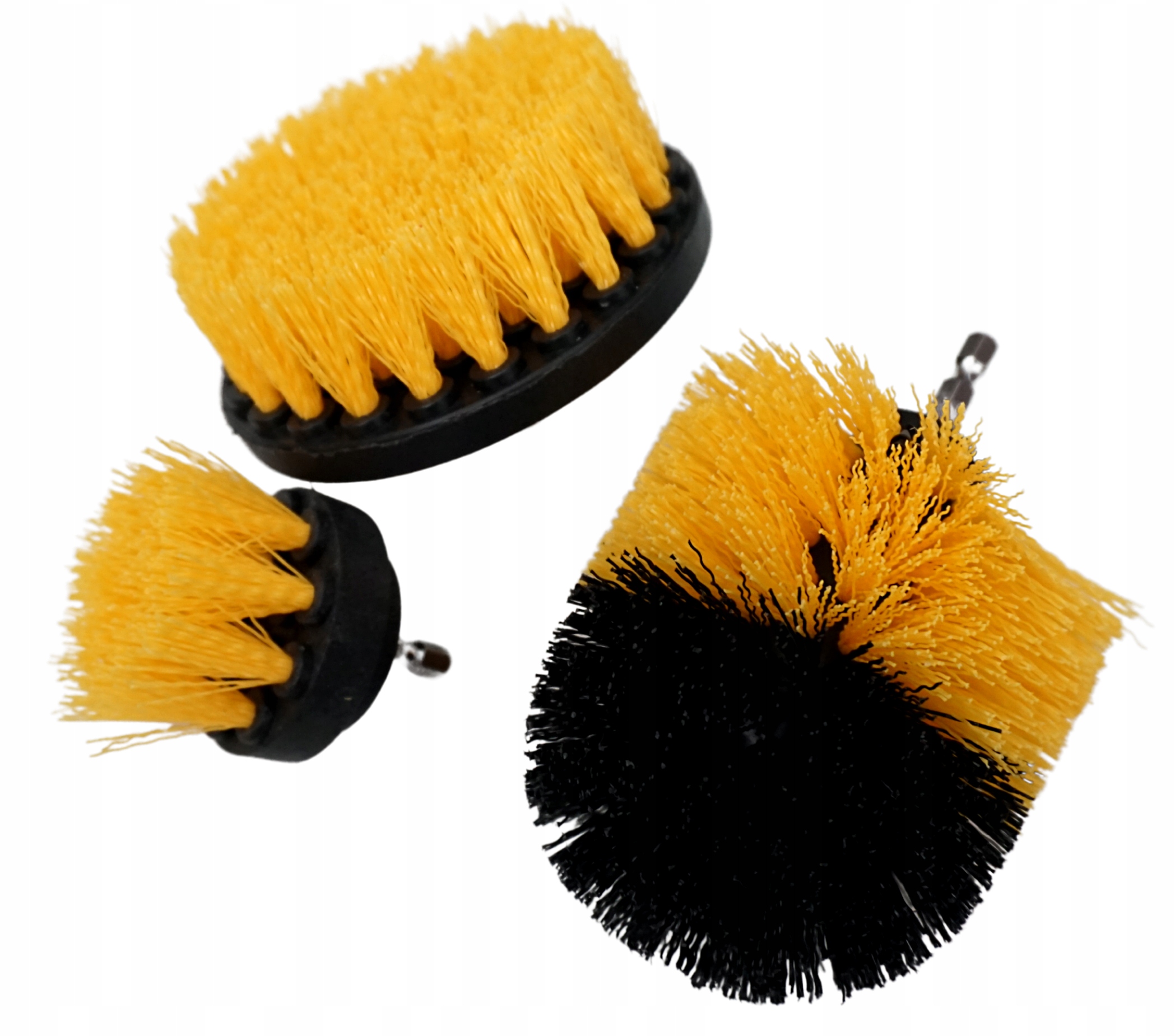 Набір з 3 пензлів з різною формою та діаметром дозволяє швидко та ефективно очистити сильно брудні поверхні та важко дістатися до місця.