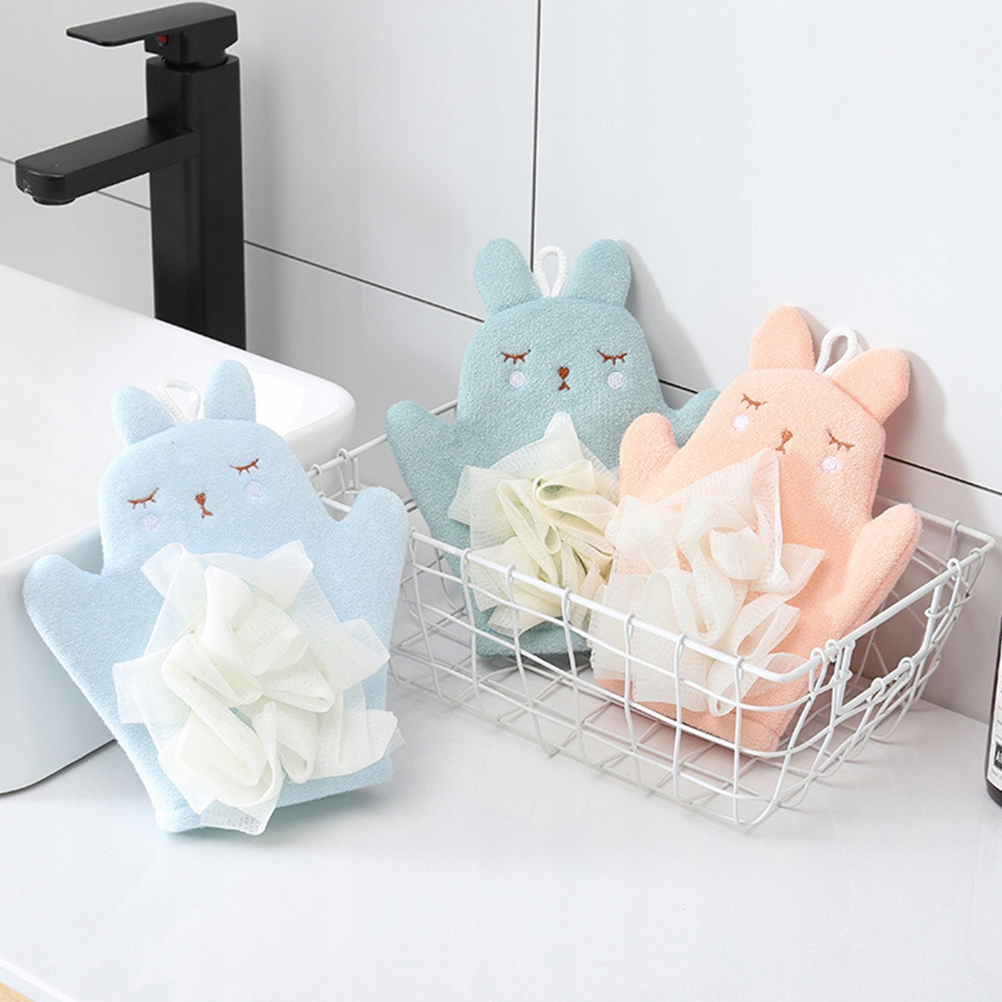⭐ подвійну рукавичку для купання з чарівним зайчиком, ідеально підходить для заміни традиційних рушників.