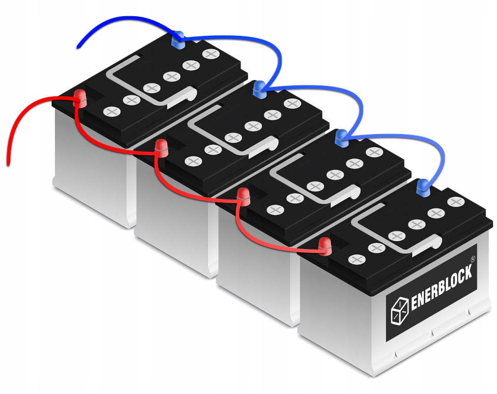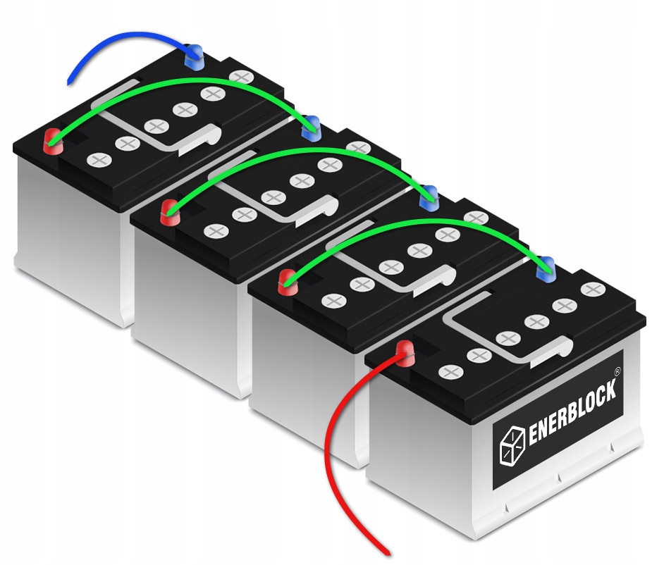 - 4 battery 12 V = voltage 48 V < In, among others: installations of solar systems, energy warehouses, outboard двигуни та електромобілі.
