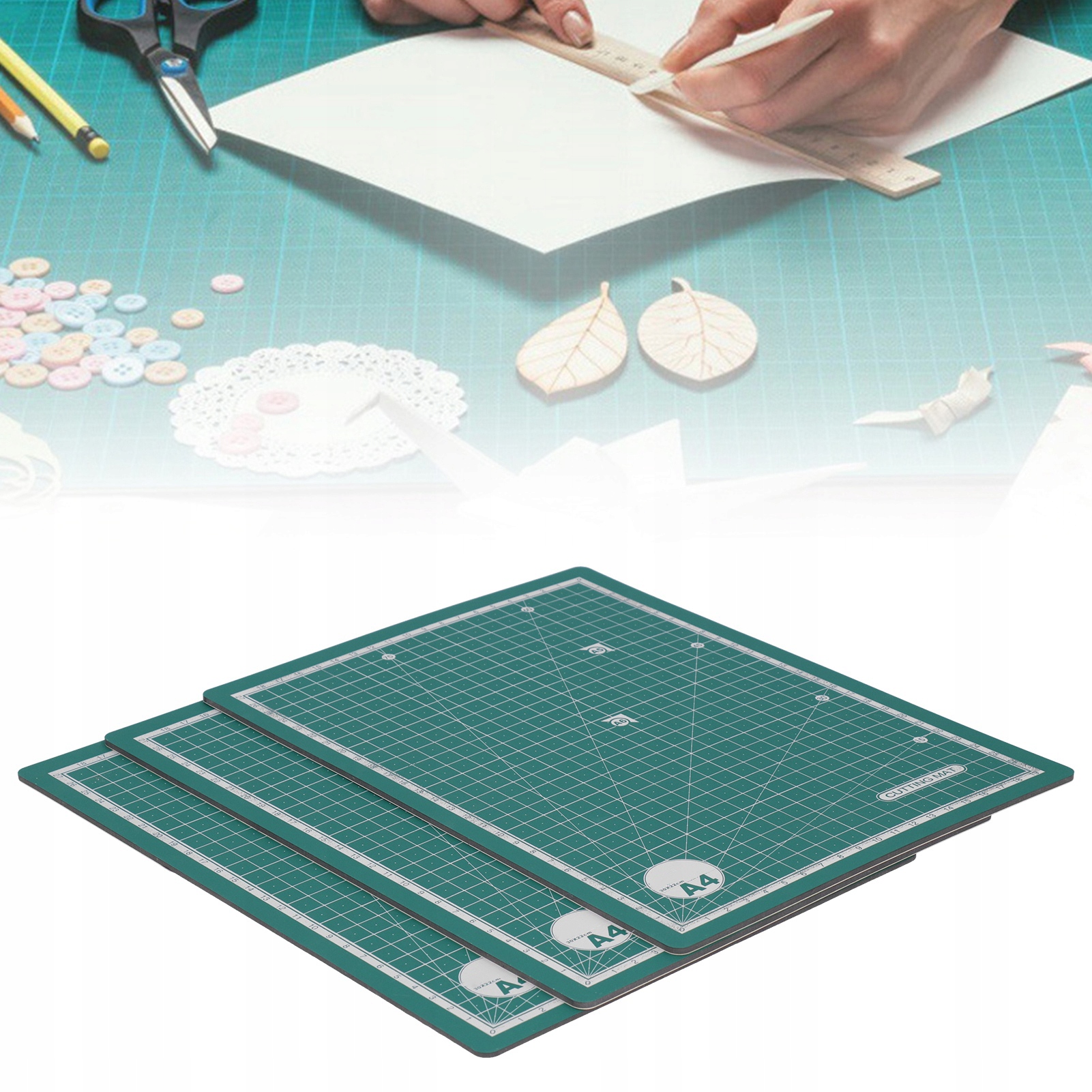 3. Розмір продукту становить 30 х 22 см, а на поверхні ріжучої прокладки є сітчасті лінії, які можуть посилатися на розмір під час використання. Він містить три килимки для різання, кожен упакований в окремий пакет PE. Нож окреслений на опорній пластині, а сліди ножа на початку більш помітні і поступово зникають.