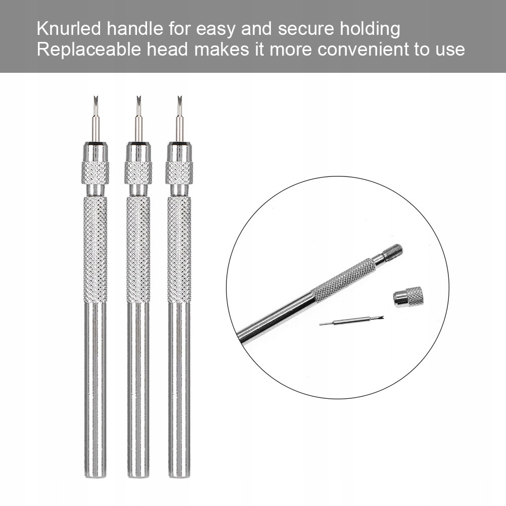 1. Виготовлений з легкої сталі + хромований матеріал, міцний і стійкий для використання тривалого терміну. В основному для регулювання ремінця годинника та видалення роз'єму Lumper Watch. Світло і компактна, змінна головка робить її більш зручною для використання. Ручка з легким та безпечним утриманням, комфортним почуттям рук. Практичний інструмент для ремонту годинників для годинників.