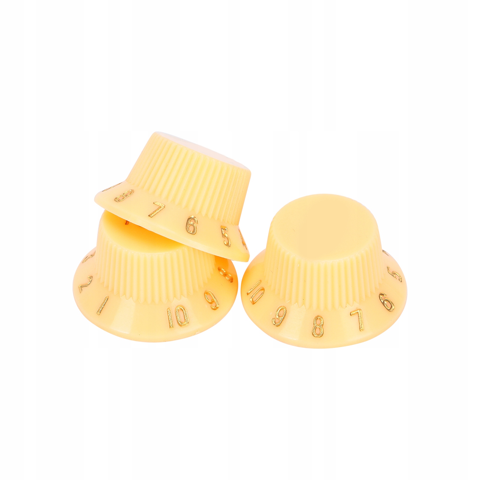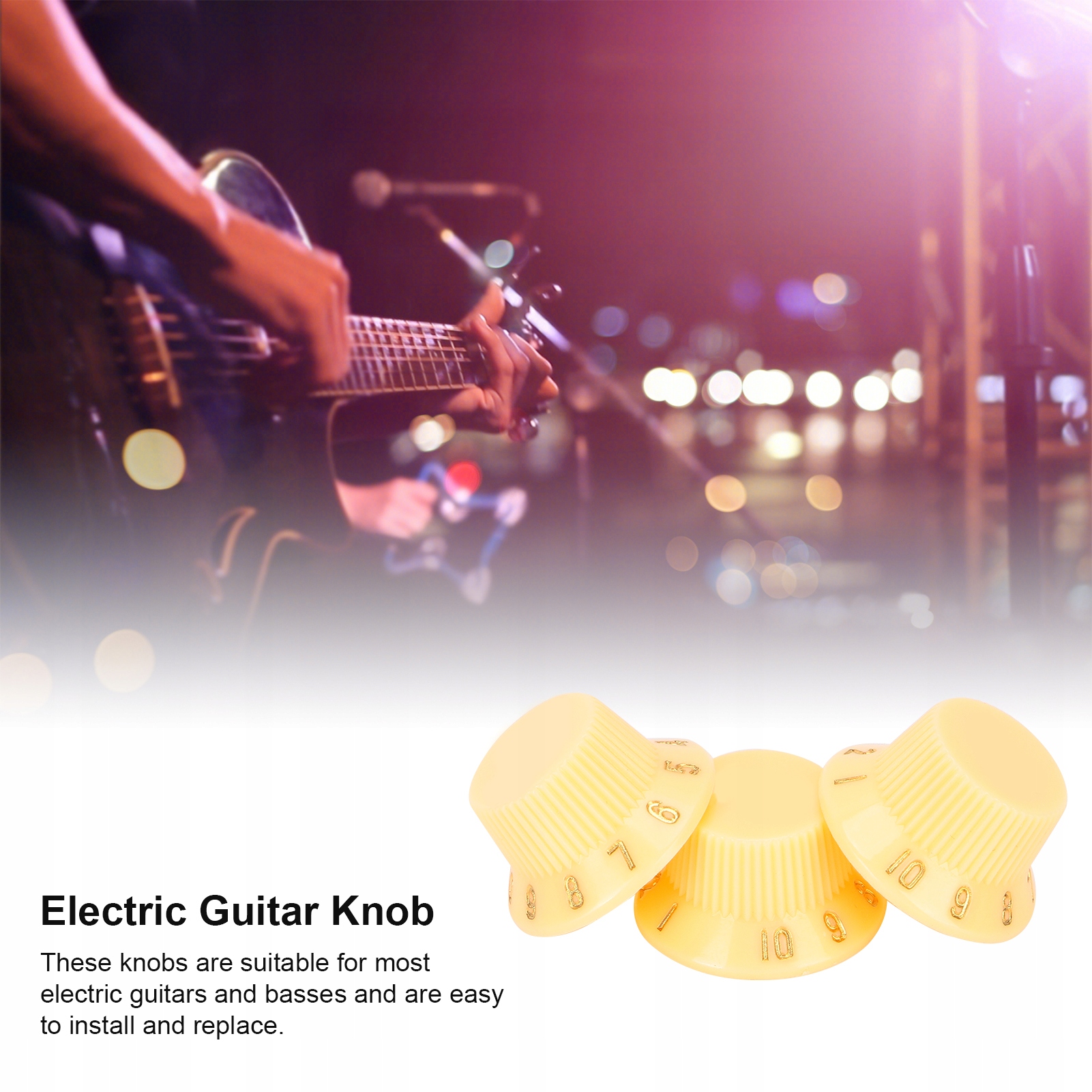 1. Набір включає ручку регулювання гучності та 2 ручки регулювання тону, легку для заміни старих або пошкоджених ручок. Виготовлений з високоякісного пластику, твердого та подряпинного пластику, непросто в носінні після тривалого використання. Ці гітарні ручки оснащені телефоном, що нелегко ковзати під час використання і їх легко регулювати. На ручках є чіткі літери та числа, щоб полегшити перегляд обсягу та контролю тонів. Ці ручки підходять для більшості електричних гітар і басів і їх легко встановити та замінити.