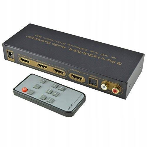 Оптичний комутатор SPDIF, 3-портовий аудіоекстрактор HDMI з ІЧ-пультом дистанційного керування, підтримує 4Kx2K, ARC, Full 3D