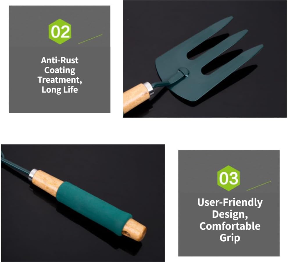 Садові набори матеріалів виготовлені з міцного та міцного залізного художнього матеріалу. Поверхня покрита антикорозійним покриттям ефективним та довговічним, ви можете бути впевнені у використанні. Параметри продукту Набір інструментів для садівництва -це три розміри набору для вилки 34 х 87 см. Обсяг застосування Набір інструментів садівництва для жінок підходить для гри на пляжі посадки в теплицях, що перетворюють розчісувальний ґрунт тощо, незалежно від того, чи можна використовувати це садовий двір, а інші сцени на свіжому повітрі можуть використовуватися вдома. Введення продукту гострого краю набору садових інструментів є плавним у використанні, і нелегко викликати живці та подряпини на нашій шкірі, що є практичним безпечним та надійним. Досвід використання власника набору інструментів для садівництва загорнутий у губку, а ручка проти Slip зручно використовувати заощадження роботи і проста, хоча вона легка і мала її міцність і стійкість до зносу, все ще добре і не втомлюється протягом тривалого часу.
