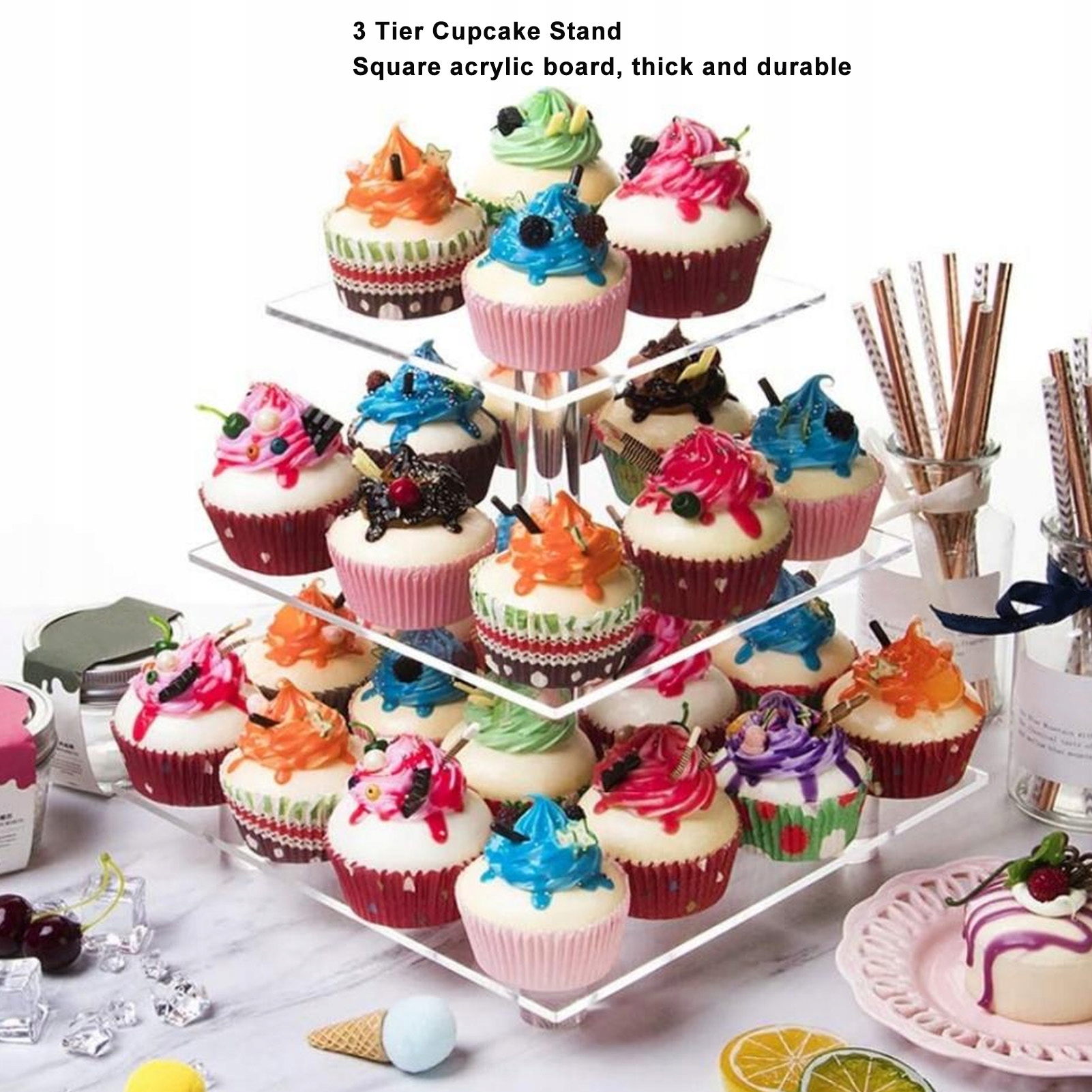 3-рівень підставка для кексів акрилової квадратної ручки десертна підставка для весілля на день народження в магазині