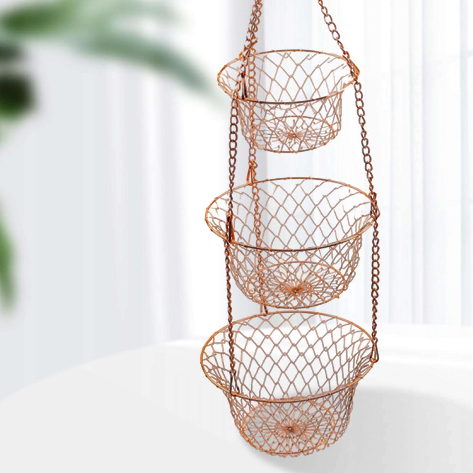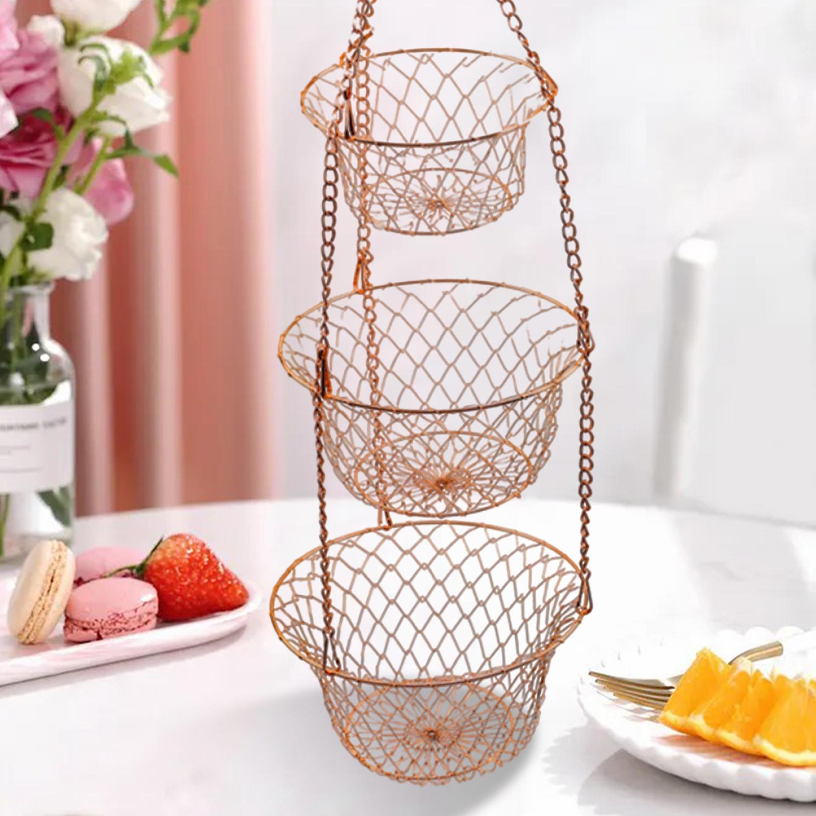3-рівня фруктових кошиків, ланцюжок для зберігання овочів на кухні, висить, мідь