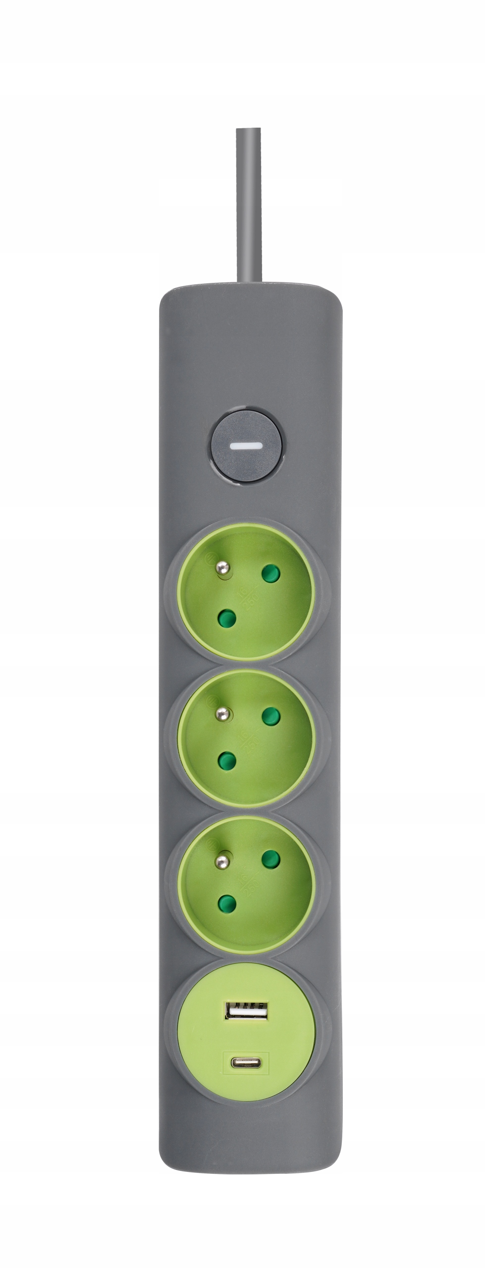 3 розетки з "0" 3M 1,5 мм2 USB A+USB C сіро-зелений розетка