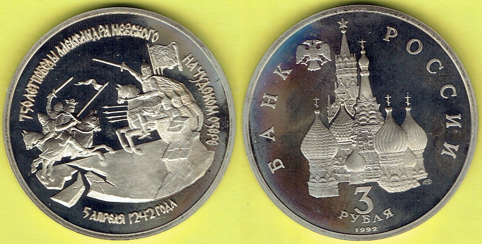3 Ruble 1992 r. Aleksander Newski - Proof.