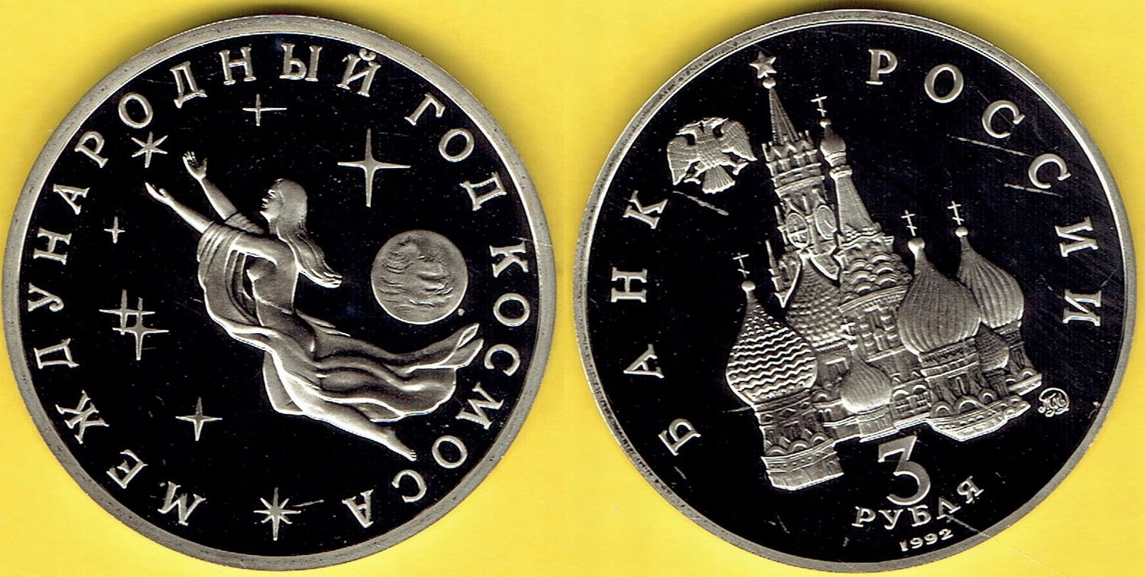 3 Ruble 1992 r. Kosmos proof.