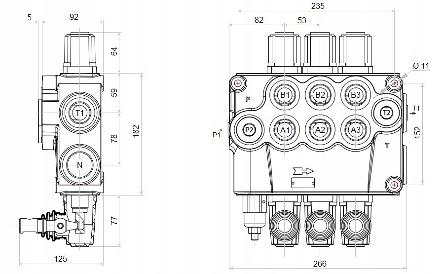 - Подача від насоса (P1, P2): внутрішня різьба BSP 1''