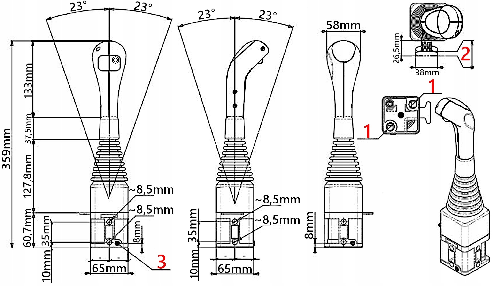 Надійний джойстикзабезпечує механічне керування триходові гідравлічні клапани керування TURA (навантажувач) за допомогою двох кабелів і однієї кнопки.