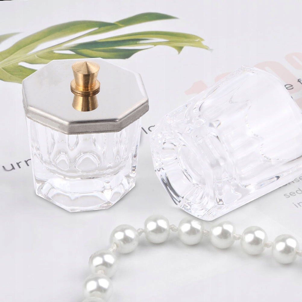 Міцний прозорий скляний контейнер, який можна багаторазово наповнювати, чудово підходить для виробів для нігтів.