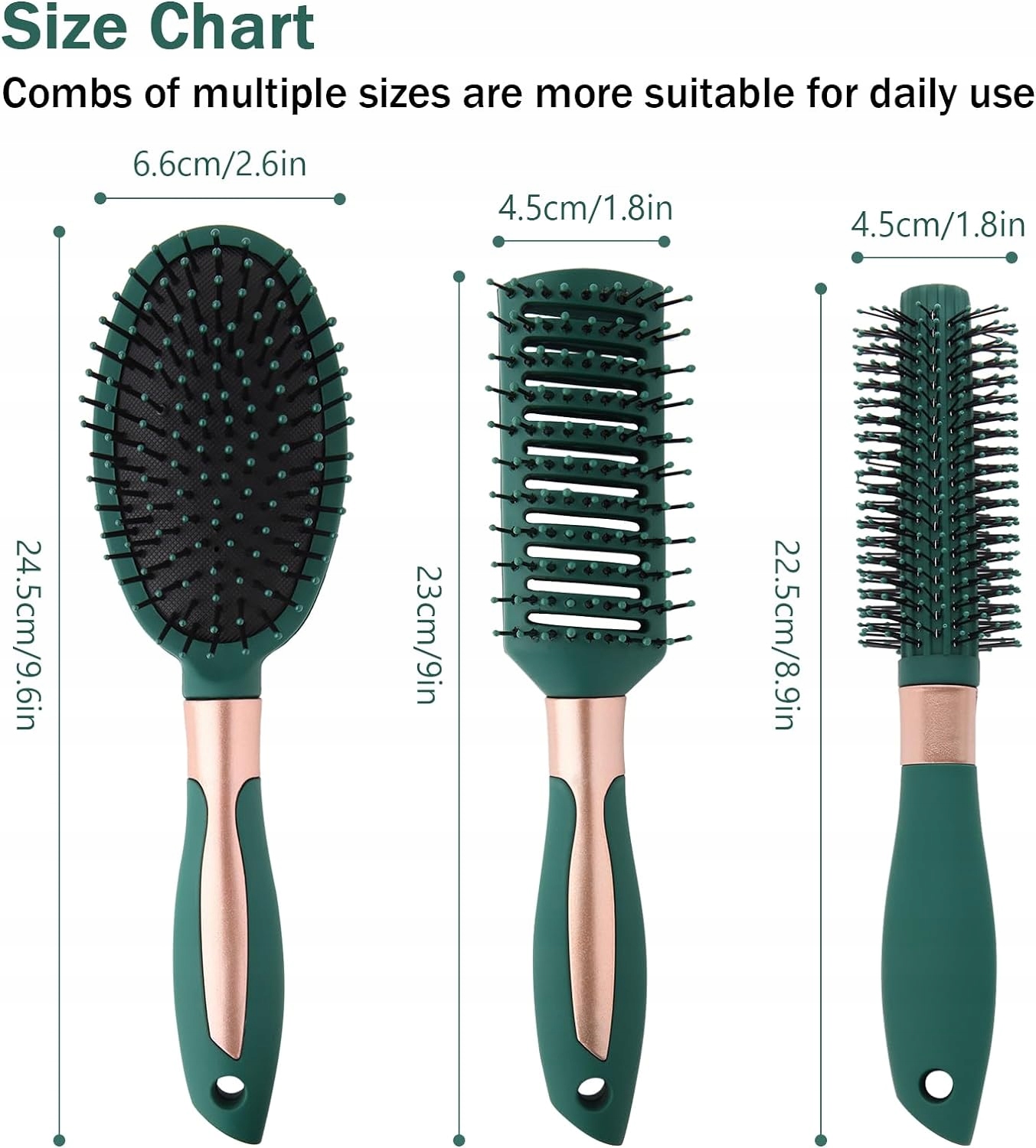 3 ПК. Щітка для волосся для жінок Антистатичної овальної подушки безпеки. Керрі Круглі щітки для волосся, що розчісує наборів щітки для волосся з довгою ручкою