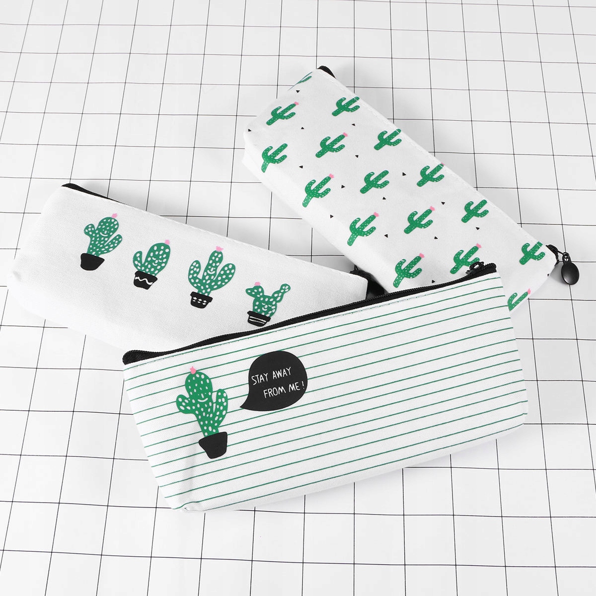 ✅3 * Пенал на полотні з принтом кактуса, сумка для ручок, косметичка, чохол для творчого навчання, канцтовари