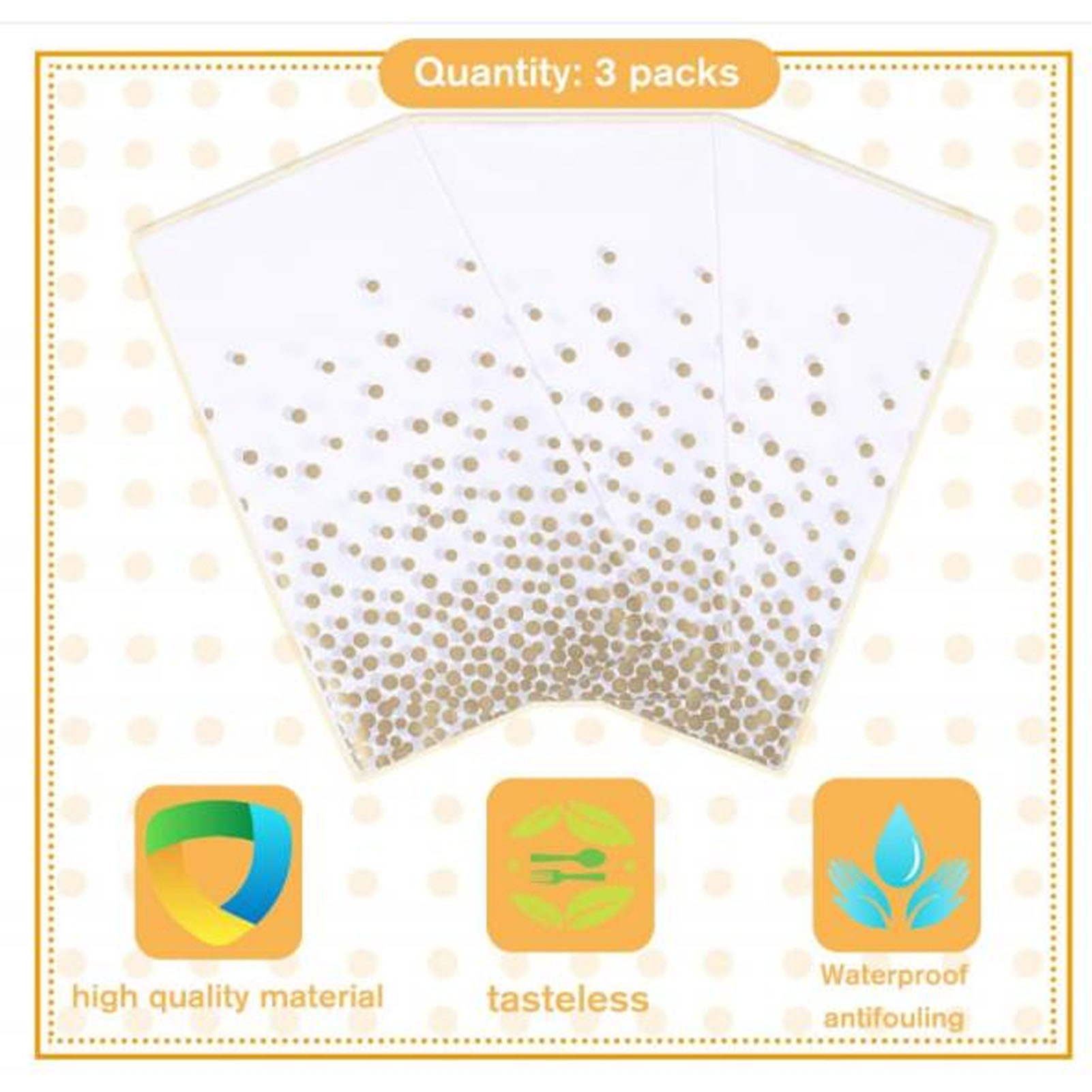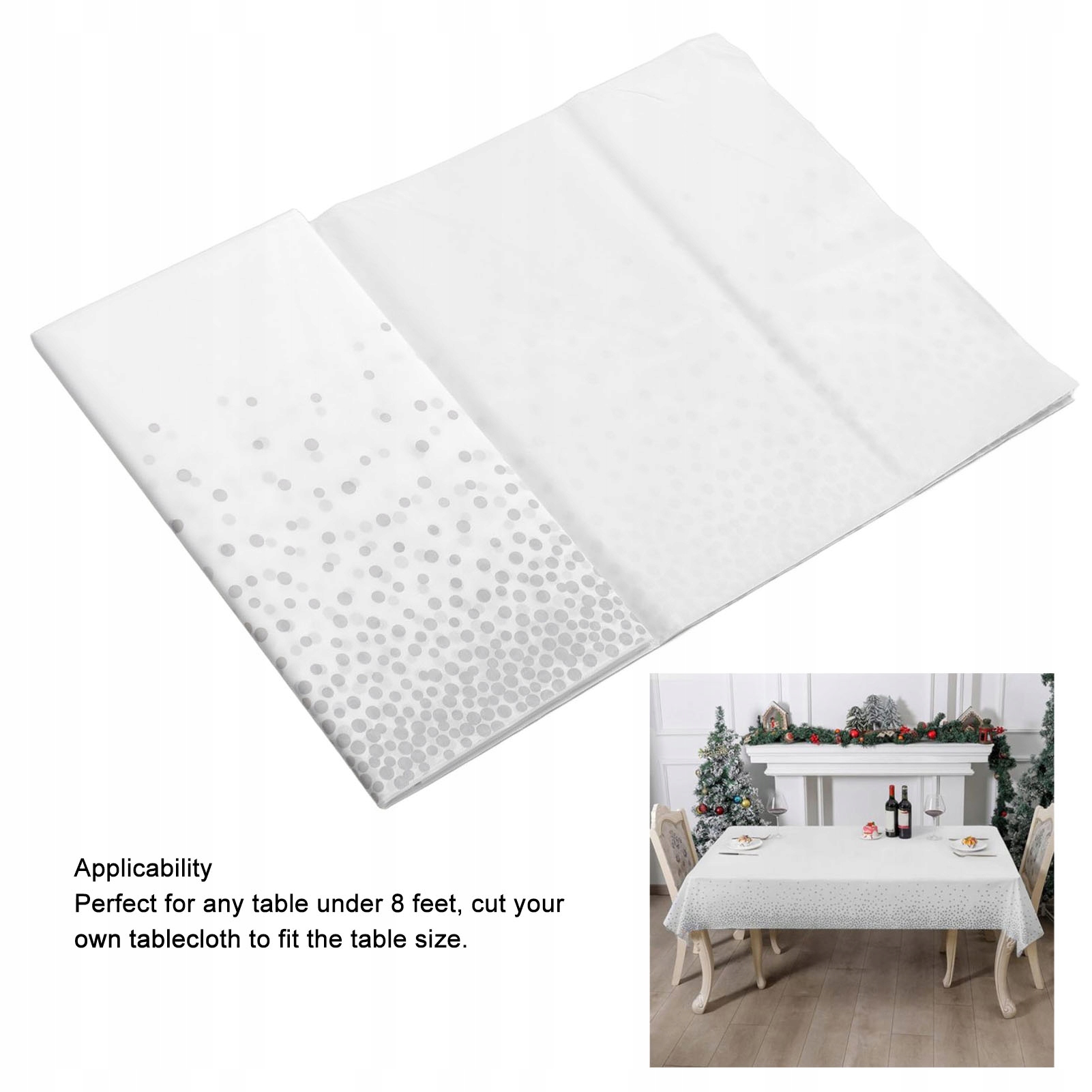 1, пластик: пластикова скатертина є водонепроникною та маслянонепроникною, що допомагає підтримувати стіл у чистоті, а також м’якість і комфорт. 2、УНІВЕРСАЛЬНІСТЬ: скатертина розміром 54 x 108 дюймів ідеально покриває будь-який стіл заввишки менше 8 футів. Його також можна легко розрізати, щоб підходити до столів різного розміру. 3, Широке застосування: скатертина підходить для використання як у приміщенні, так і на вулиці, ідеально підходить для святкування днів народження, весілля, ювілеїв, банкетів, пікніків, сімейних зустрічей тощо. 4, Багаторазова та екологічна: скатертину не лише легко використовувати миючий, але також багаторазовий, що робить його екологічно чистим і довговічним вибором. 5、Мінімалістичний і стильний: прямокутна скатертина має модний крапковий візерунок, який додає стильний і привабливий акцент до сервірування столу.