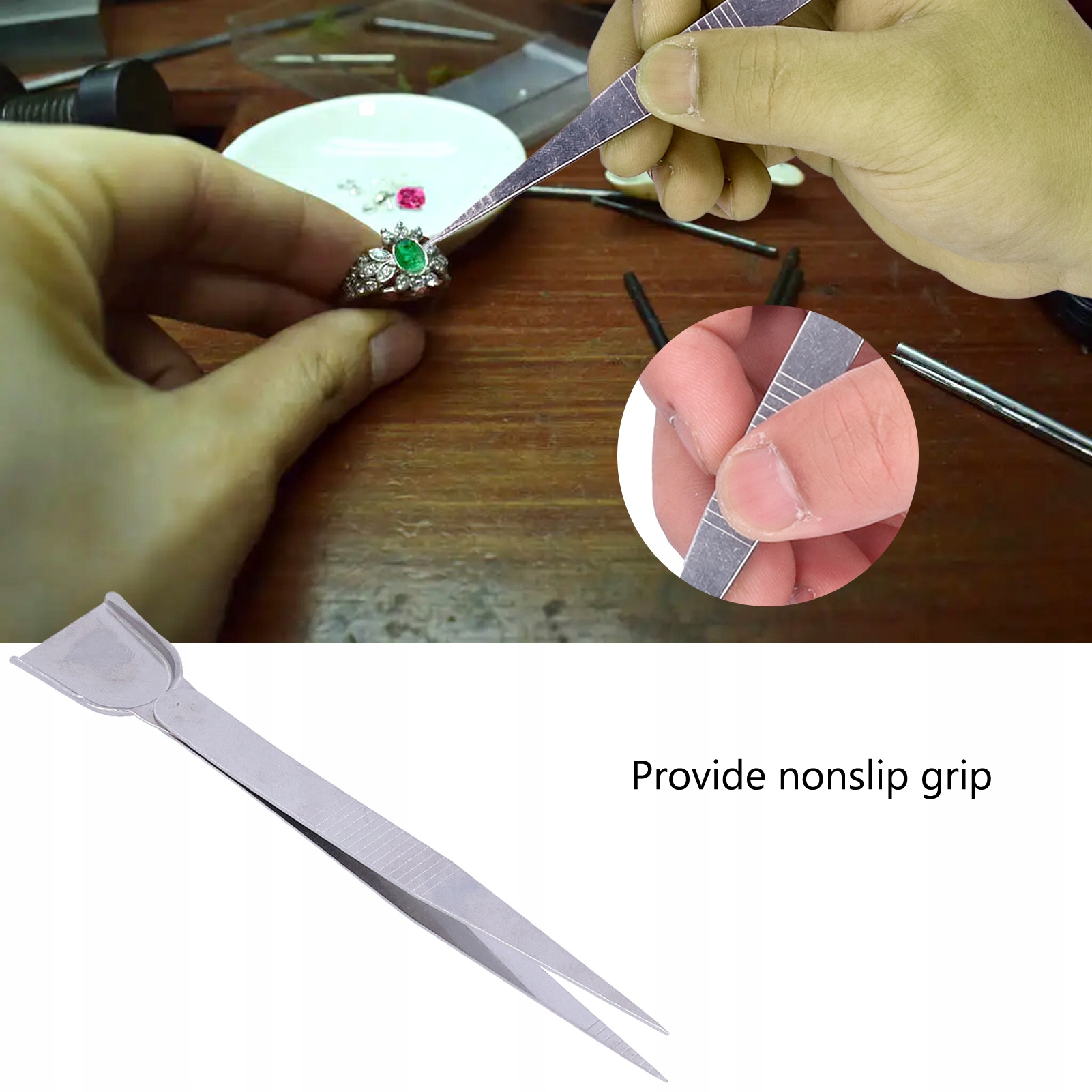 2. Нержавіюча сталь: цей ювелірний пінцет виготовлено з високоякісної нержавіючої сталі, яка забезпечує високу твердість і довговічність.