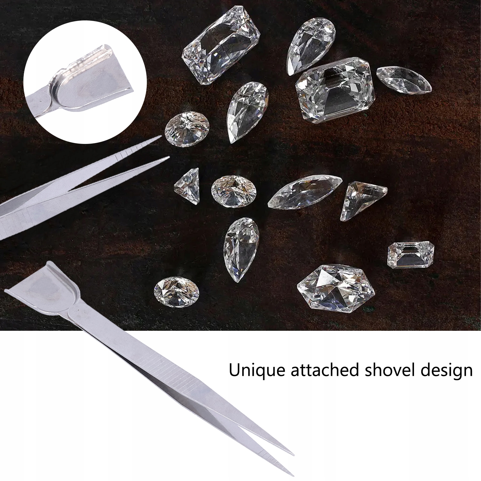 1. Унікальний дизайн: цей ювелірний пінцет із прикріпленою лопаткою можна використовувати, щоб підбирати та переносити різні намистини, каміння тощо на робочу зону.