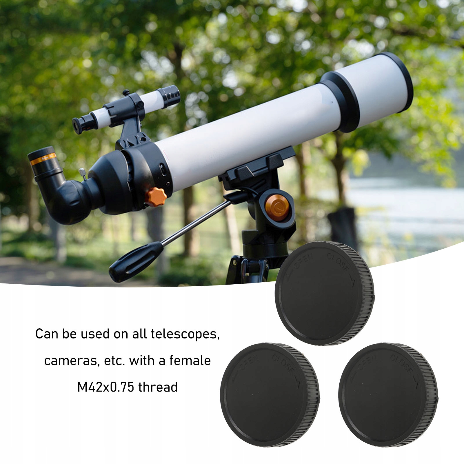 4. Широке застосування: ця задня кришка об’єктива має внутрішню різьбу M42x0,75 із зовнішнім діаметром 2 дюйми, і її можна використовувати на всіх телескопах, камерах тощо з внутрішнім різьбленням M42x0,75.