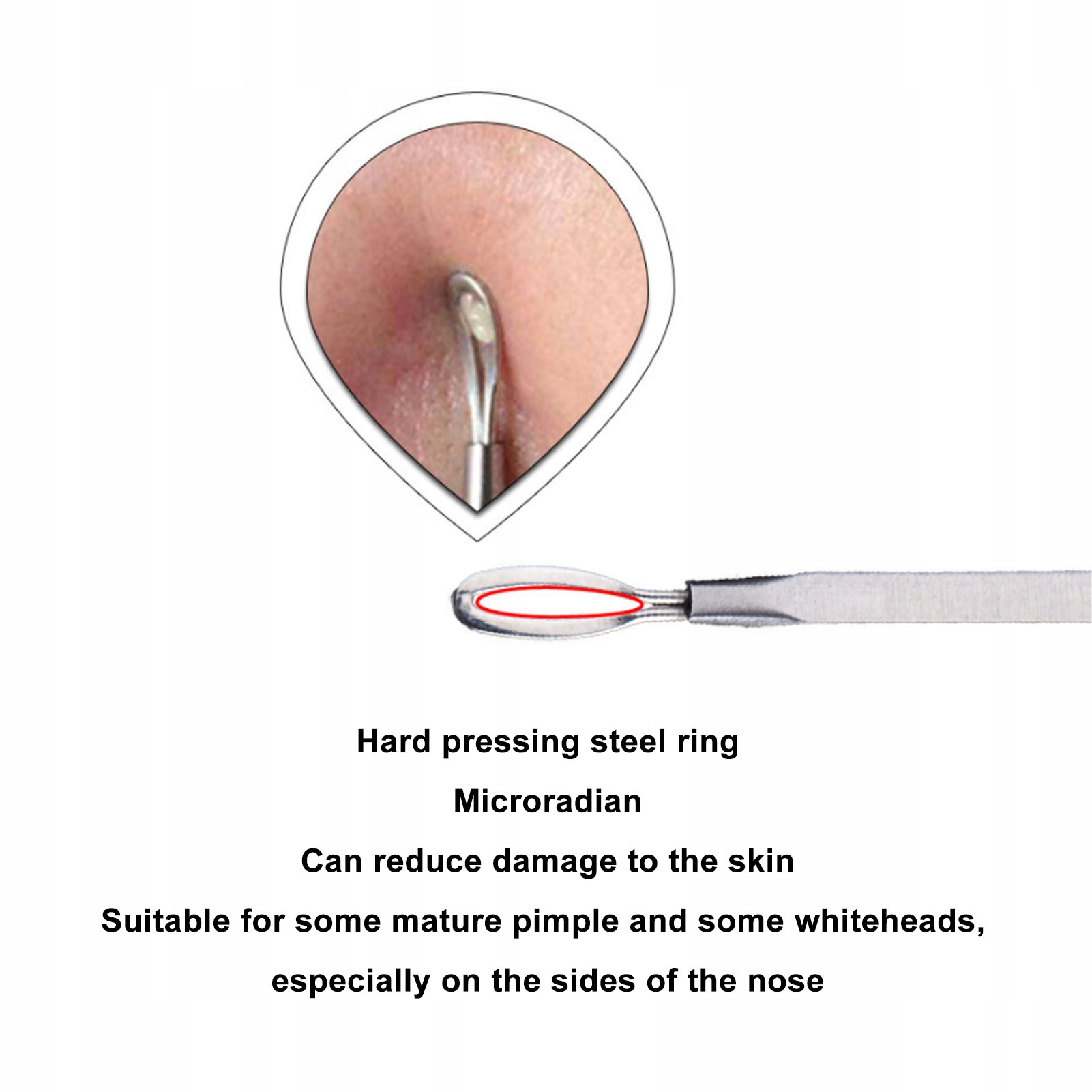 2. Прес-кільце: тонке сталеве кільце, натисніть на прищ і вичавіть прищ, підходить для прищів, грубих гранул, чорних крапок. Жорстке сталеве кільце, підходить для зрілих прищів і деяких білків, особливо з боків носа.