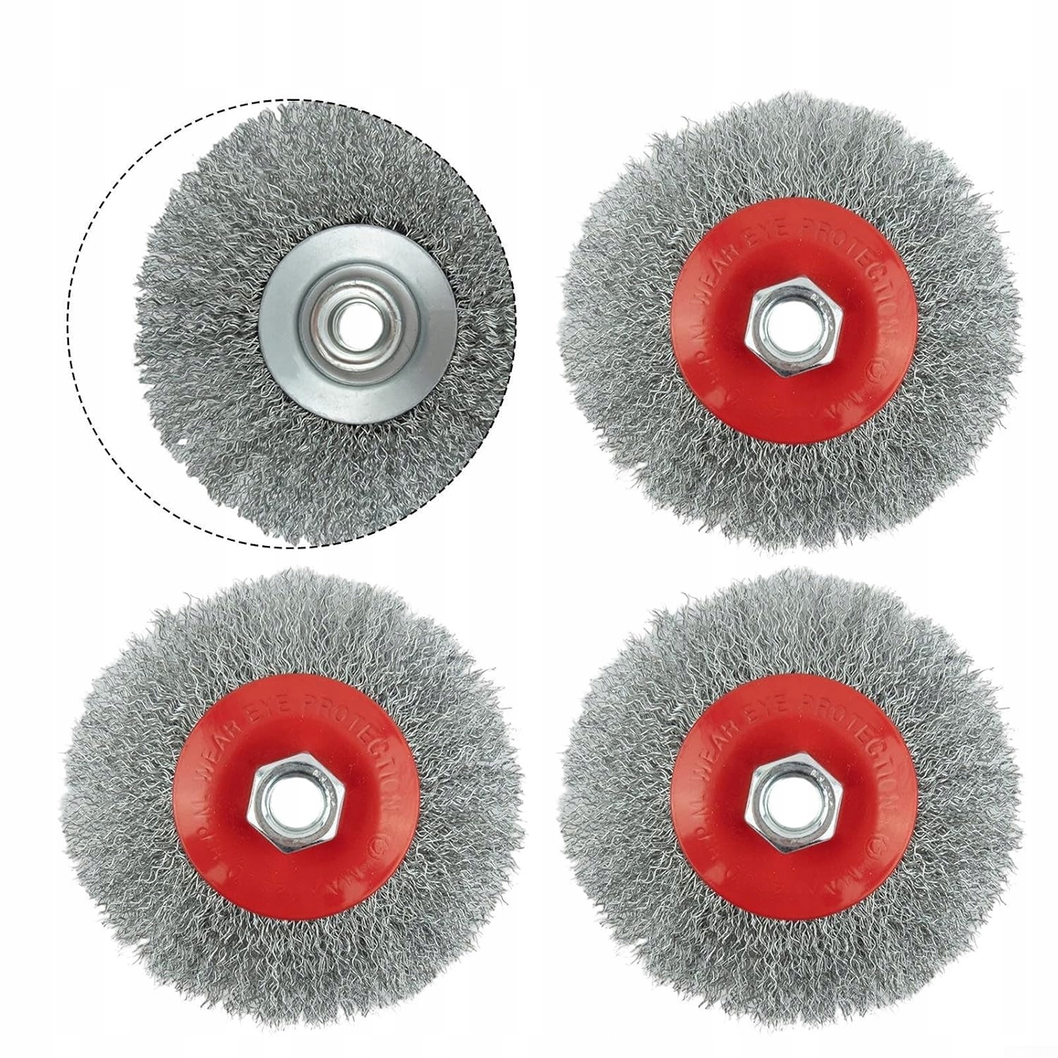 виготовлений з дроту вуглецевої сталі, що характеризується високою твердістю, стійкістю до зносу, забезпеченням високої ефективності роботи. Кутові шліфувальні машини (Ø 115 мм), кожен з виготовлених з вуглецевої сталі. Підходить для кутового шліфувального машини з кріпленням M14.