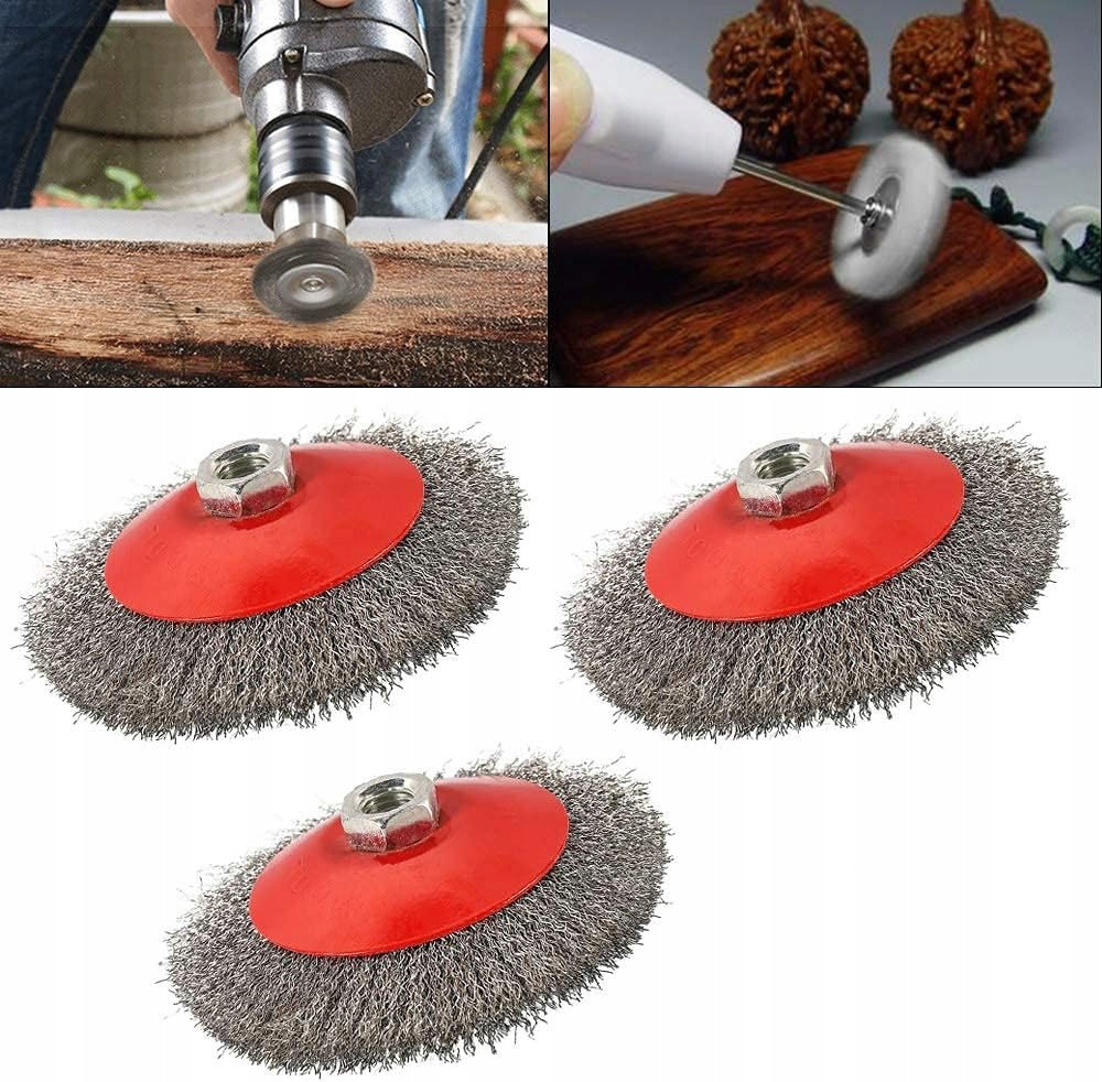 Дротяна щітка для кутових шліфувальних машин, виготовлених з дроту з вуглецевої сталі, з приємним виглядом, міцною і міцною, з високою ефективністю очищення, не іржавіє легко, дуже легко обробити поверхню великих поверхонь і може бути використаний за рахунок боргів.
