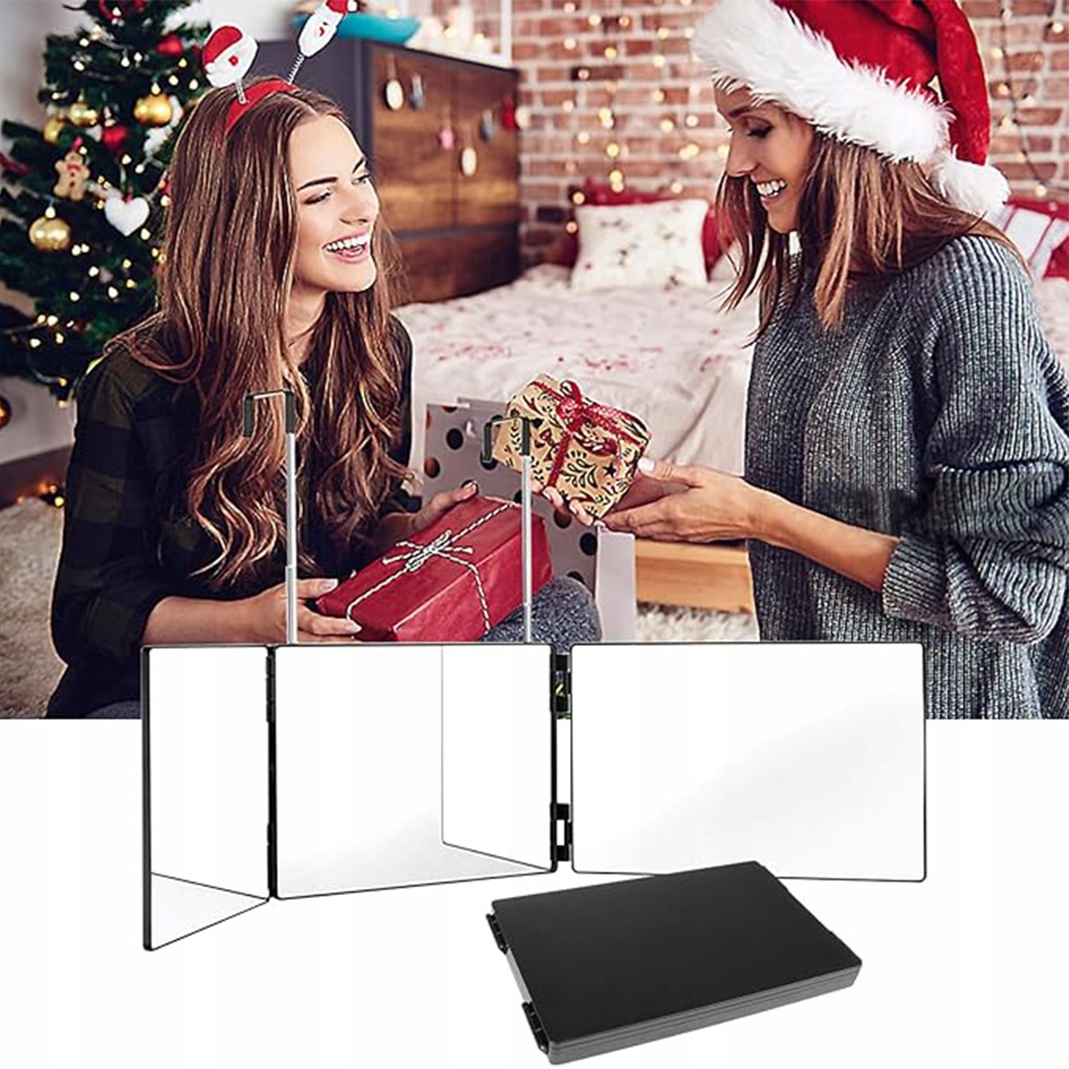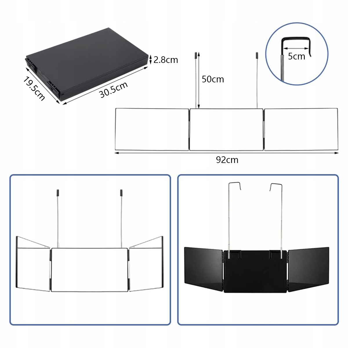 Підвісне дзеркало на 360 градусів – складне дзеркало з 3 частин для стрижки волосся своїми руками, косметичне дзеркало з регульованою висотою, дзеркало для гоління, перукарське дзеркало для макіяжу, гоління, укладки (без світлодіодів, чорне)✨✨✨