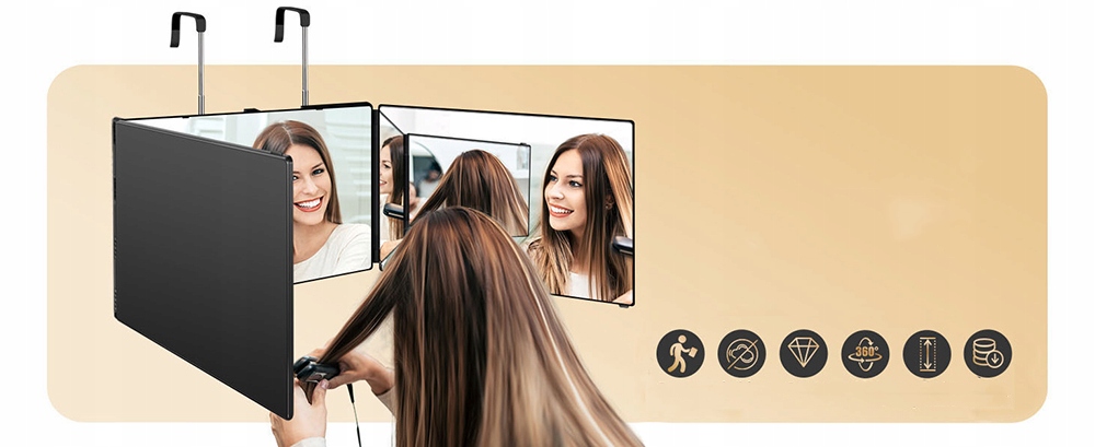 Дзеркало з поворотом на 360 градусів має регульований висувний гачок, який можна повісити на двері, стіну, у ванній кімнаті, шафі або поруч на столі. Незалежно від того, де ви його повісите, він дуже стійкий, і ви можете регулювати його висоту відповідно до своїх потреб.