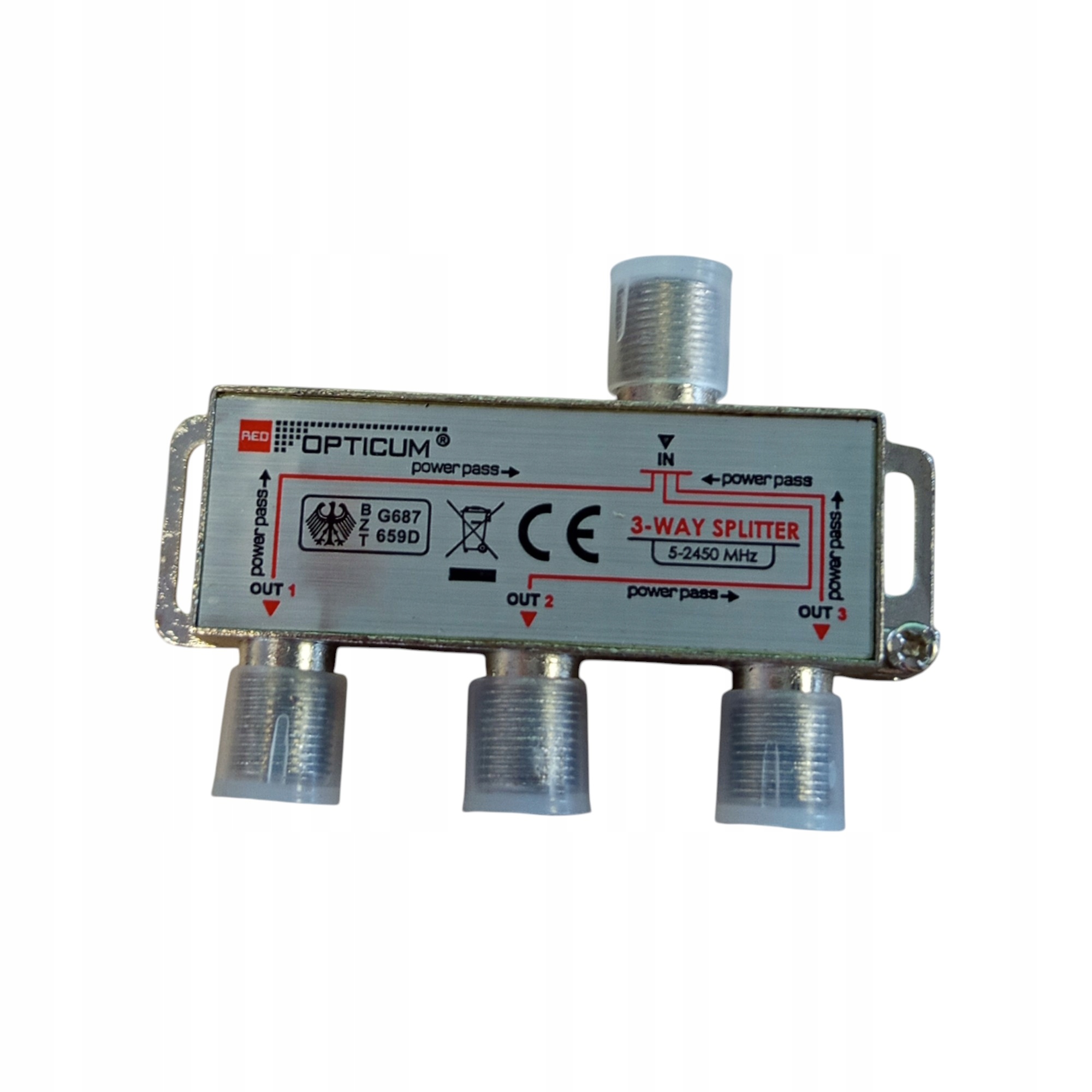 Розділювач сигналу 1/3 — це пристрій, призначений для поділу телевізійного сигналу, що дозволяє підключати один вхідний сигнал до трьох виходів. Це ідеальне рішення для установок, які потребують забезпечення сигналом DVB-T2 для кількох телевізійних приймачів.