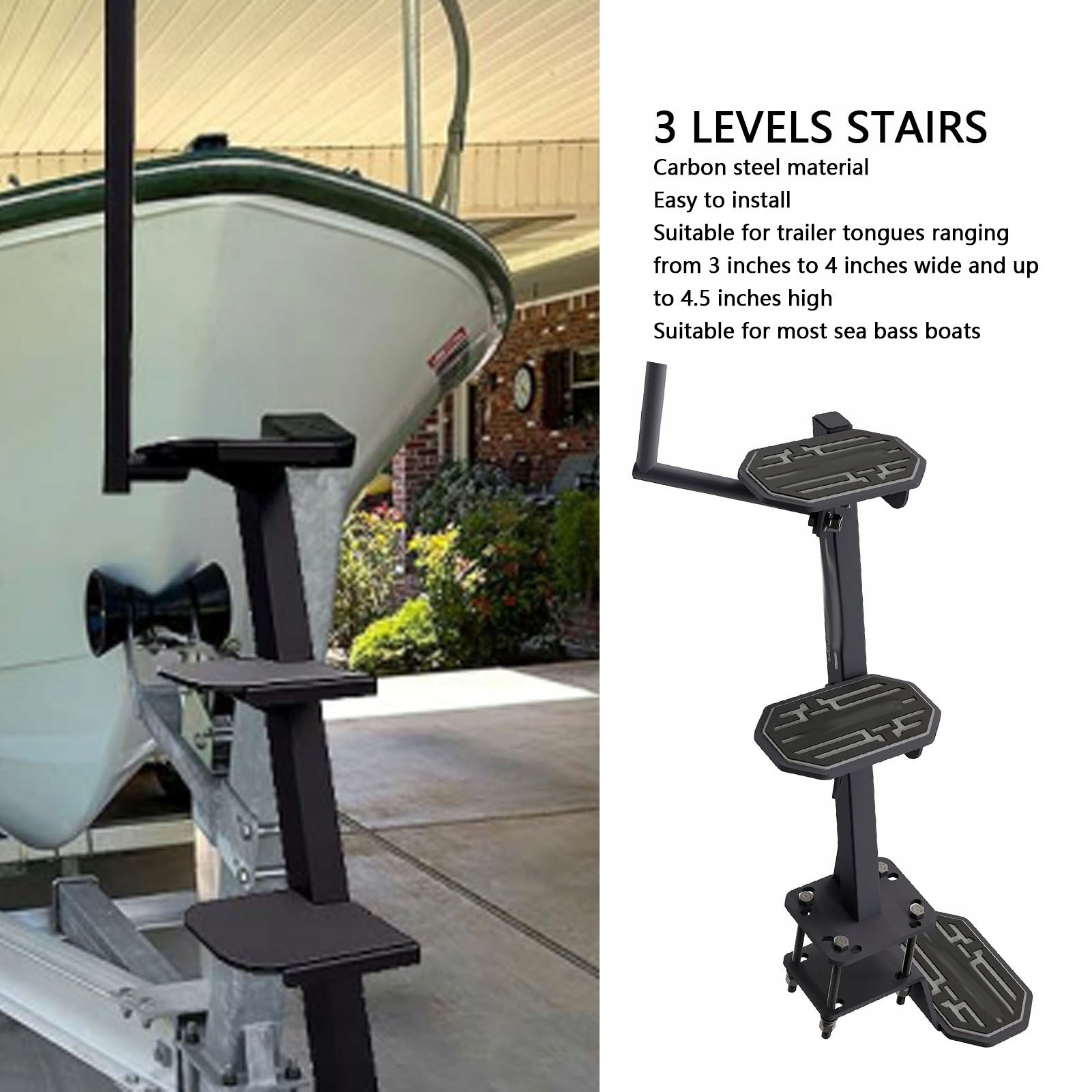 3. Для причепів: ця драбина сумісна з язиками причепа від 3 до 4 дюймів завширшки та до 4,5 дюйма заввишки, що забезпечує висоту для звичайних установок човна для окуня, покращуючи загальне враження від катання.