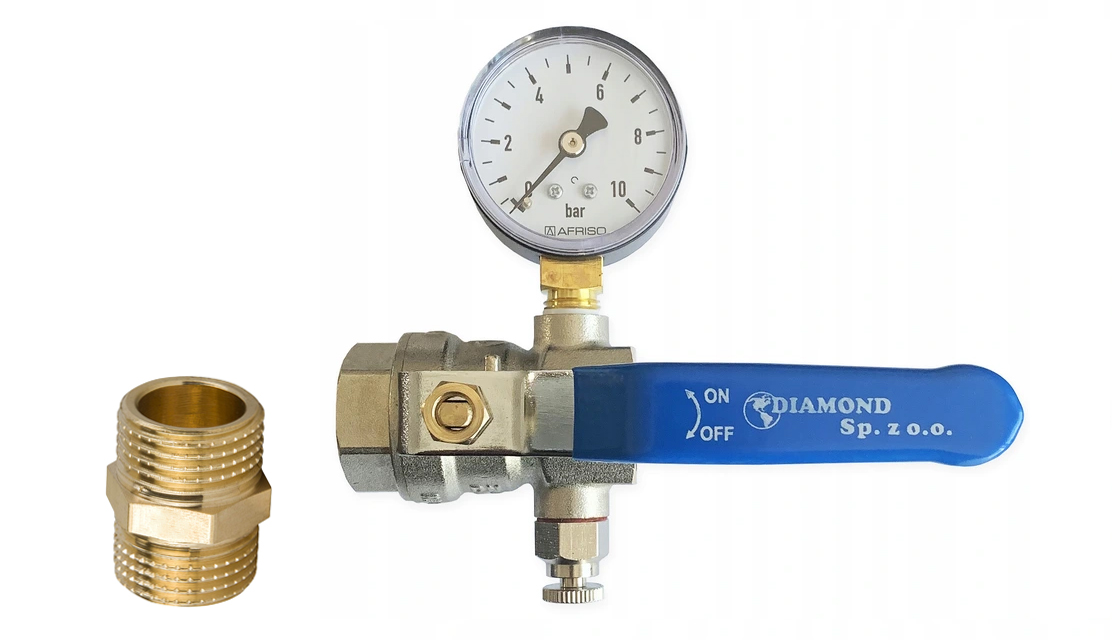 - 3/4" кульовий кран з вентиляційним отвором HISZPAN і манометром RF 50, fi50 мм, 0÷10 бар, G1/4", раді , клас 2.5 AFRISO - 2 ШТ.