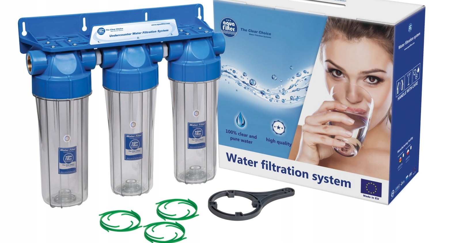 Готовий потрійний набір вбудованих фільтрів Aquafilter FHPRCL1/2-B-TRIPLE для швидкого монтажу та захисту водопровідної установки від піску, мулу, шламу та ін. Вставка, яка захищає різьблення від розтріскування, має вентиляційну систему, яка полегшує заміну фільтрувальних картриджів. пригвинчування системи до вертикальної поверхні, наприклад до стіни.