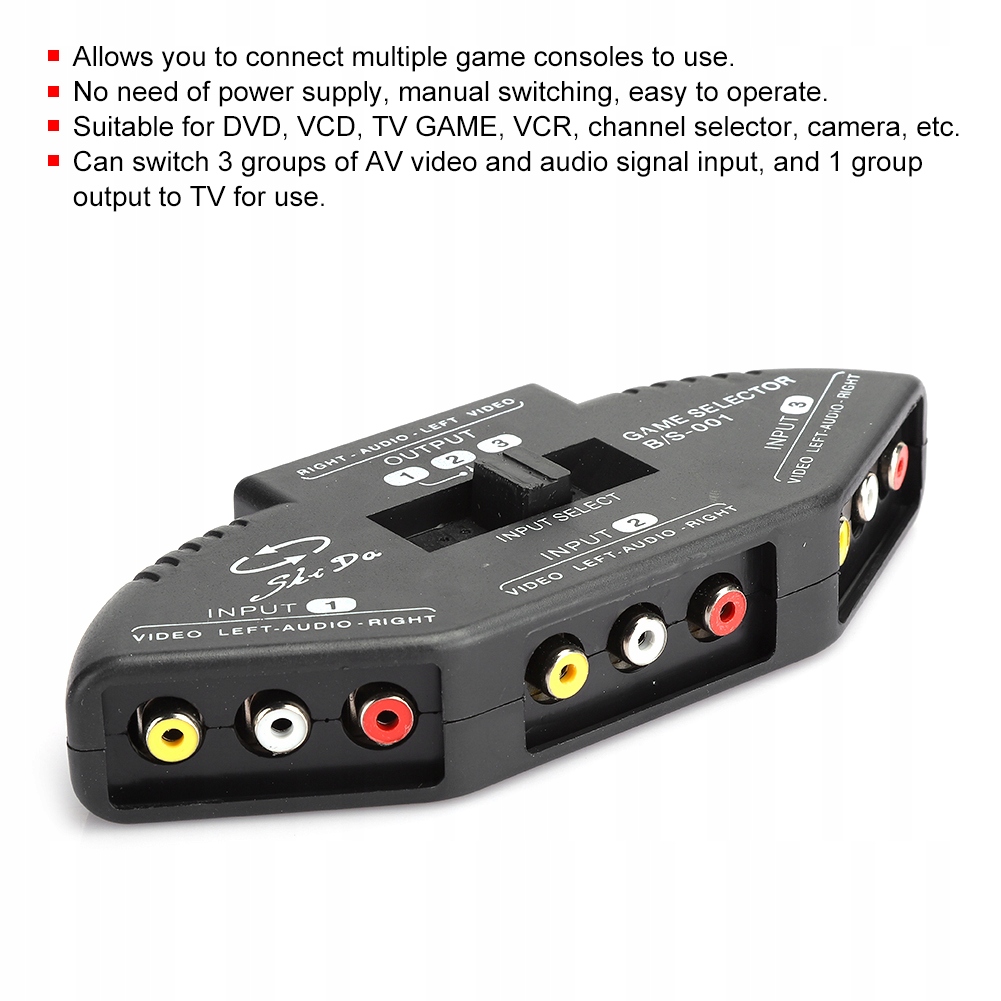 2. Цей конвертер може переключати 3 групи AV-відео та аудіовходів і 1 групу виходу на телевізор для використання.