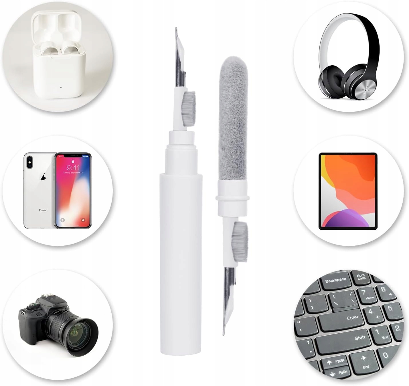 - [Ефективна чистка ручки]: 3 в 1 конструкції, яка допоможе вам ретельно очистити AirPods. Включаючи наполегливий пил на навушниках та отвори для AirPods у справі зарядки.