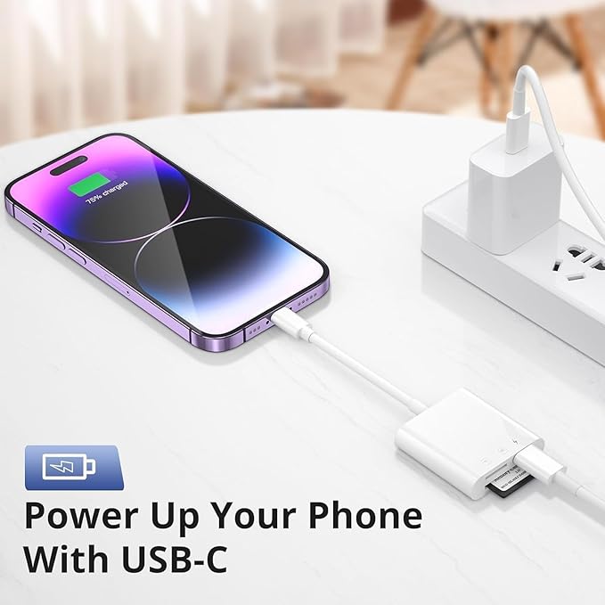 - заряджайте телефон та планшет: SD -зчитувач карт до телефону додає порт зарядки, що сприяє завантаженню та читальних карт у той же час. Коли ви використовуєте зчитувач SD -карт для надсилання фотографій та відео, вам більше не доведеться турбуватися про те, що телефон або планшет вирядують.