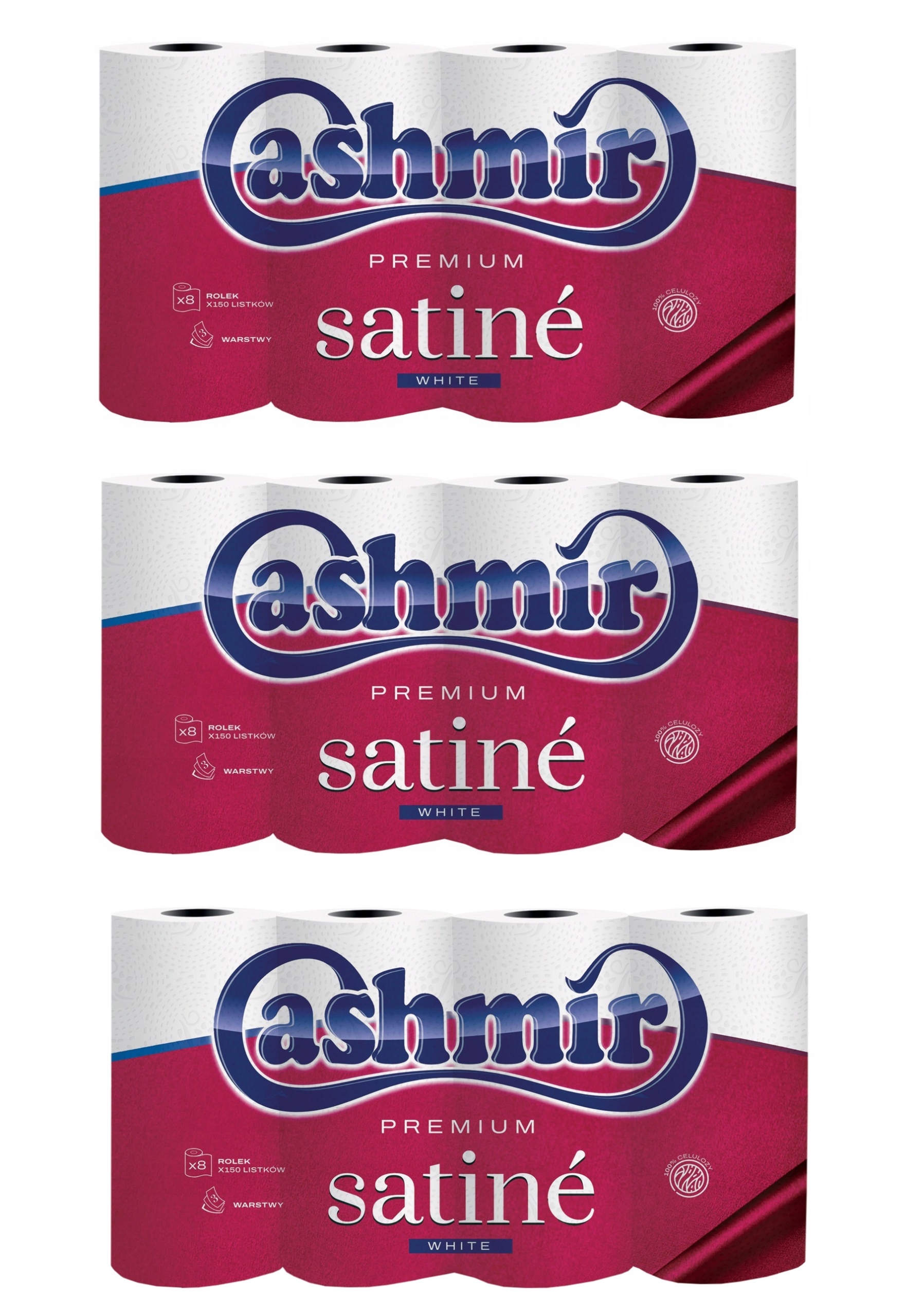 3 x CASHMIR ТУАЛЕТНИЙ ПАПІР 8 ШТ. 3W PREMIUM WHITE SATINE (24 РОЛИКИ)