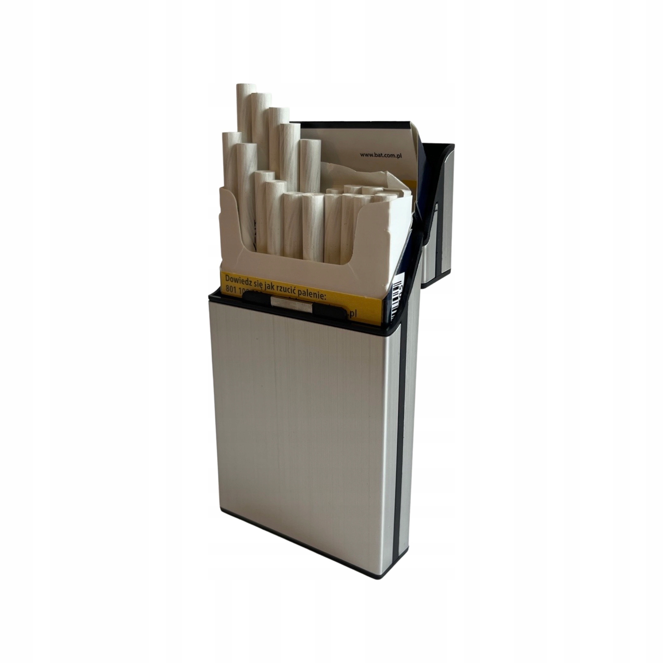 ✅ Легкий і міцний, оскільки він виготовлений із міцного пластику, покритого шаром сталі - це гарантує, що пачку сигарет неможливо розчавити