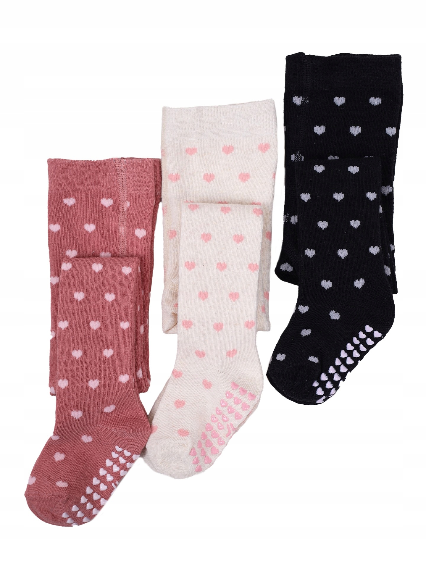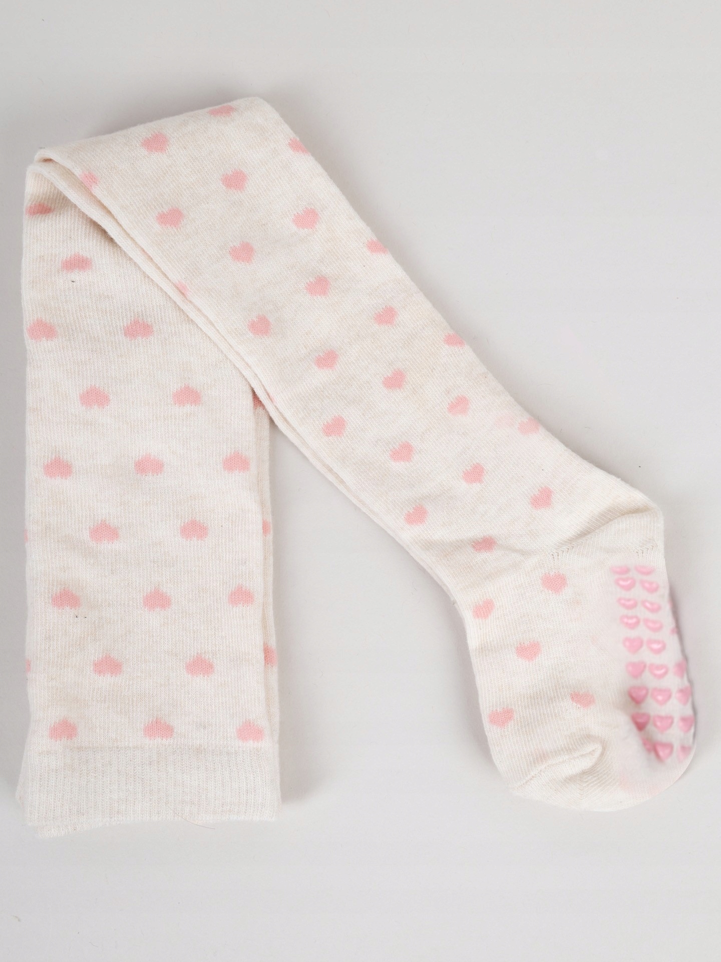 бавовна, що покриває колготки для дівчат. у дівочих кольорах, з мотивом серця . Прив'язаний з м'якої і довговічної бавовни, яка гарантує чудовий комфорт. Завдяки їх гнучкості вони ідеально адаптуються до ніг дитини і не напиваються. Серця , що гарантує хорошу адгезію підлоги. Завдяки цьому, ваша дитина зможе безпечно рухатися на слизьких поверхнях.