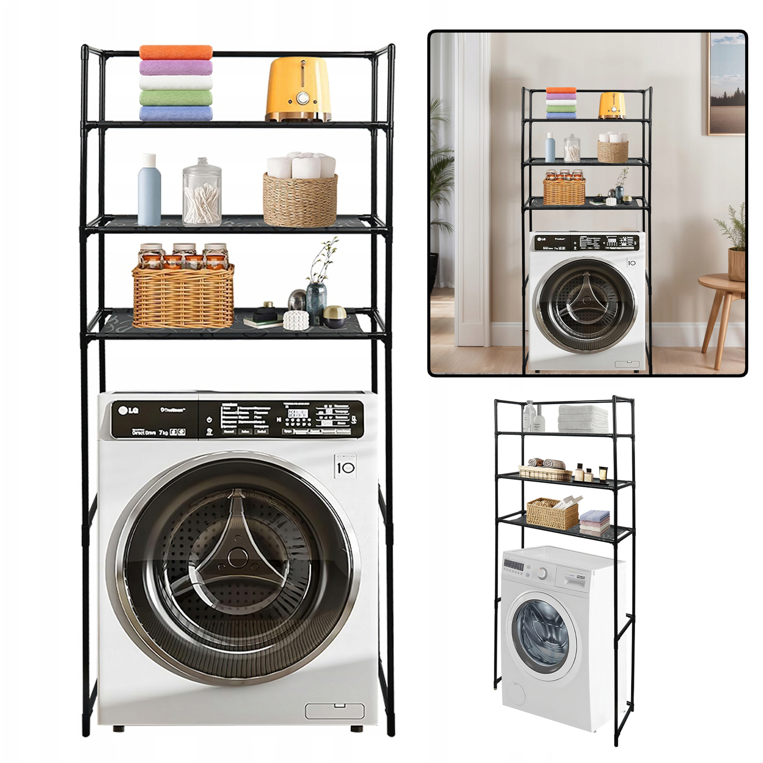 3-ЯРІВНА ПОЛИЦЯ ДЛЯ ПРАЛЬНОЇ НАД СТІЯЖКОЮ ДЛЯ ТУАЛЕТУ/ПРАЛЬНОЇ МАШИНИ