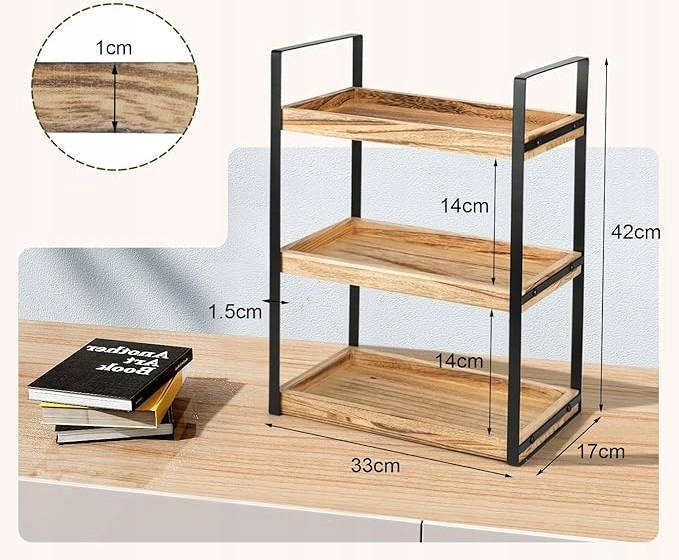 - МІЦНА ЕКОНОМІЯ ПРОСТОРУ. Виготовлена з високоякісної деревини та міцного металу, ця міні-полиця для стільниці створена для тривалого використання. Органайзери для духів оснащені водонепроникним покриттям, яке полегшує очищення та запобігає волозі та цвілі.