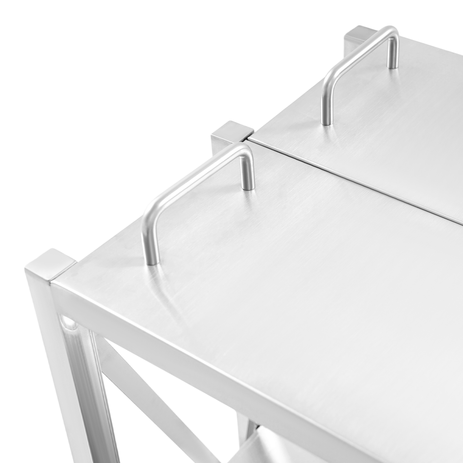 Для акуратної та організованої кухні з усім під рукою виберіть наш кухонний візок із нержавіючої сталі. Його 3-рівневий дизайн пропонує універсальне зберігання та допомагає вам працювати ефективно, надаючи вашій кухні чи будь-якій кімнаті свіжий, оновлений вигляд.