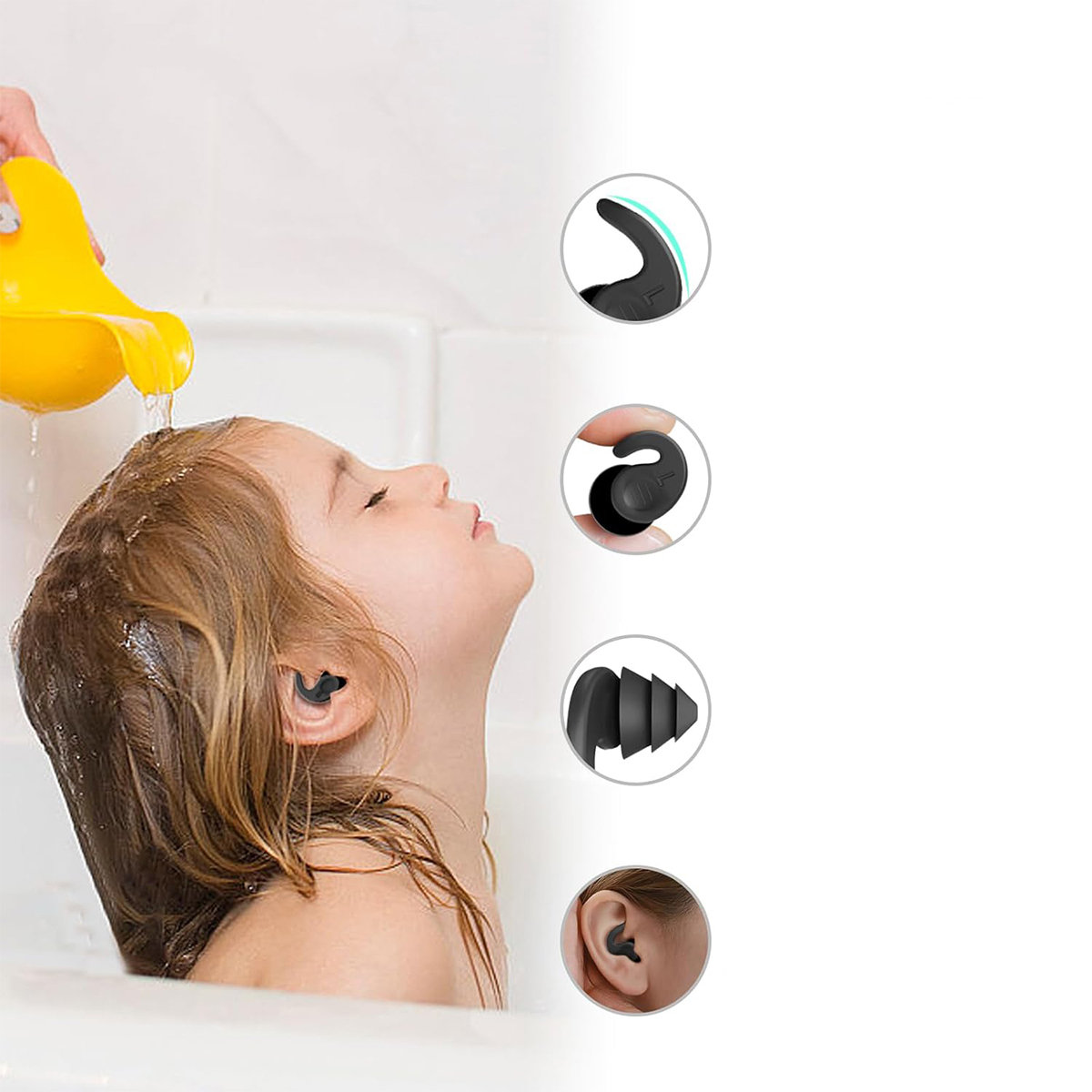3 пари плавальних вушних ковпачків (чорний + сірий + світло -зелений) та 3 коробки для зберігання. Ви можете вибрати між різними членами сім'ї або використовувати 3 кольори по черзі.