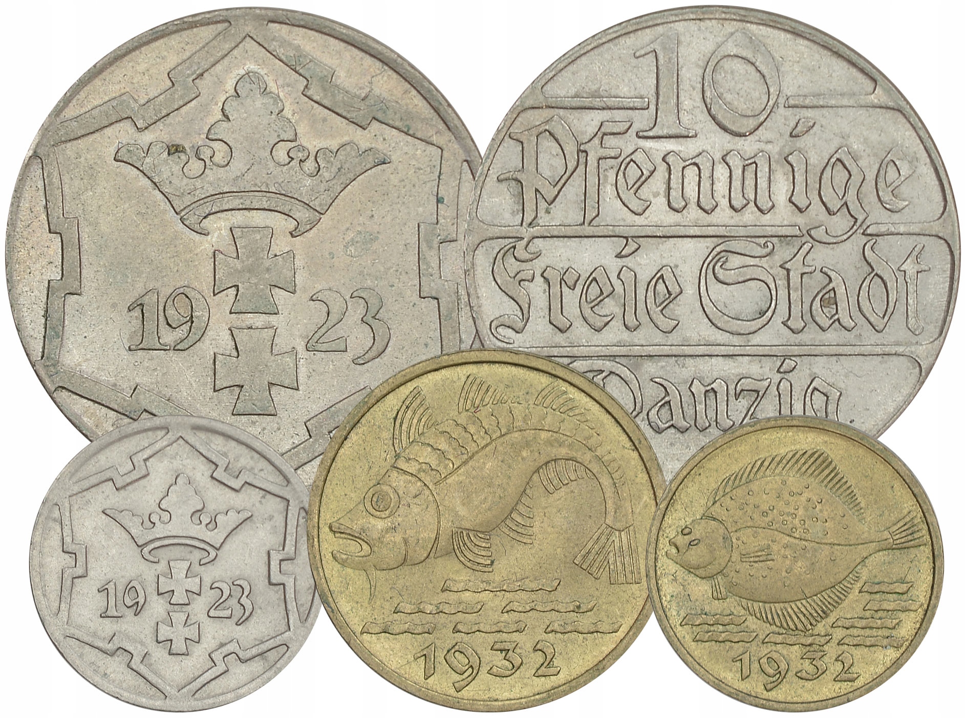 - Опис: У набір входять монети номіналом: 5 фенігів 1923 р., 1932 р. Флаундер; 10 фенігів 1923, 1932 Код.
